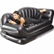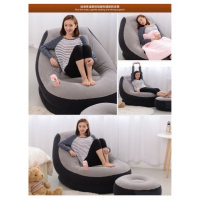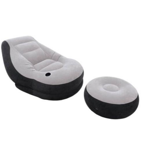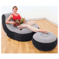 Get ready for a relaxing time in the cozy Intex Ultra Lounge. Featuring a comfortable flocked surface material and leisurely backrest, kick back and relax with your legs on its included ottoman. Its built-in cup holder is perfect for keeping a cool beverage close at hand. With a waterproof top and sides, sturdy vinyl bottom and compact folding design, this chair and ottoman set is great for just about any room. Want a luxurious inflatable chair while watching your favourite shows. Our inflatable Ultra Lounge Chair is a great way to relax in style. Lean back and relax against the angled backrest. Put your feet up with the separate ottoman that is included. Featuring a flocked seating surface, cup holder and angled backrest, this inflatable chair and ottoman set is made for activities that ease tension. Get an Intex Ultra Lounge with Ottoman today and see where you can set up relaxation. The Sofa Lounge is as comfortable as it is unique. Enjoy whether you are reading, watching TV, or relaxing. These Intex Sofa Ultra Lounge seat is designed for relaxing just about anywhere perfect for any rooms year round or for guests. This seat will inflate, deflate and be ready to go in minutes. These sofas longe available in Gray/Black Color. Is the right product to be offered gift loved ones. Intex inflatable sofa lounge is extremely simple to use, is lightweight and therefore very easy to carry anywhere you want to go. Intex inflatable sofa lounge is small and can be placed in any room of the house. Intex inflatable sofa lounge has smooth upper surface to prevent slipping when the mattress will be covered with sheet