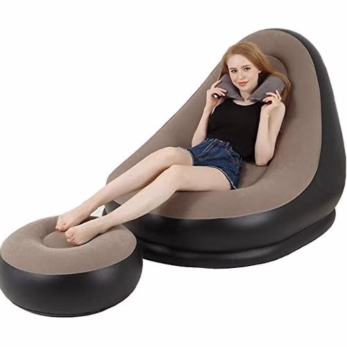 Intex Inflatable Footrest Sofa- Black ,Grey This sofa is cozy with a flocked material, angled backrest and has a built-in cup holder which makes it ultimately comfortable when you’re camping, at home watching television,reading a book or drifting off for a nap. This ultra-lounge will inflate,deflate and be ready to go in minutes. Its easy to clean and compact for storage