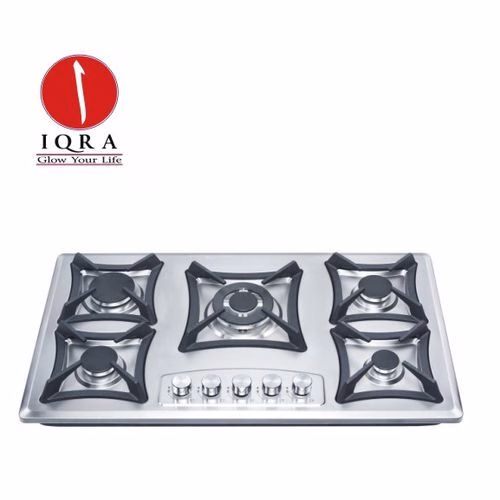 IQRA Built-in Gas Hob,90x60cm, 5 Multipool Gas Burners, Auto Ignition, Flame Failure Device, Cast Iron Pan Supports – Stainless Steel. Specially designed for advanced modular Kitchens. 90x60cm size. 4 multipool burners and One Wok Burner. Cast Iron Pan support. Electric Ignition. Flame Failure Device(FFD). Brass Burner Caps. Easy Installation. One Year Warranty,