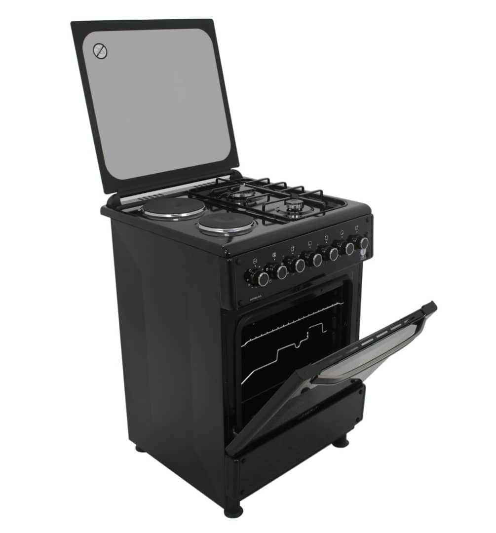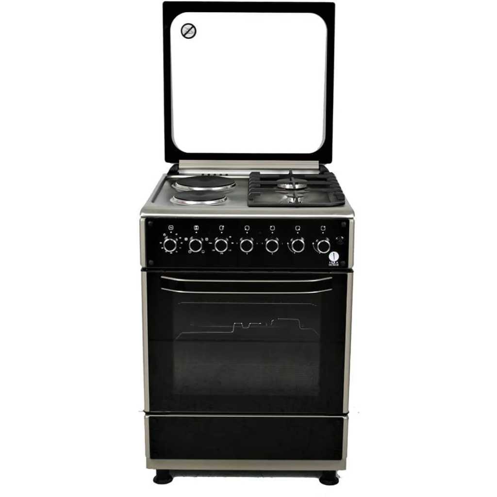 Key Features: 2 Multigas (Euro Type Pool) Burners + 2 Hot Plate (145mm-1000Watt)60x60cm cooker Electric Oven with Up and Down Heating Elements Thermostat, Electric Grill, Cast Iron Pan Support, Push Button Ignition for Hob Burners, Glass Top Lid, Oven Lamp, Rotisserie, Timer, Cool Door II(Removable inner Glass), 1 Oven Tray, 1 Oven Grid, Adjustable Feet, Hob Stainless Steel/Rest Silver Color(Glass Panels Elite Design) 1-year warranty