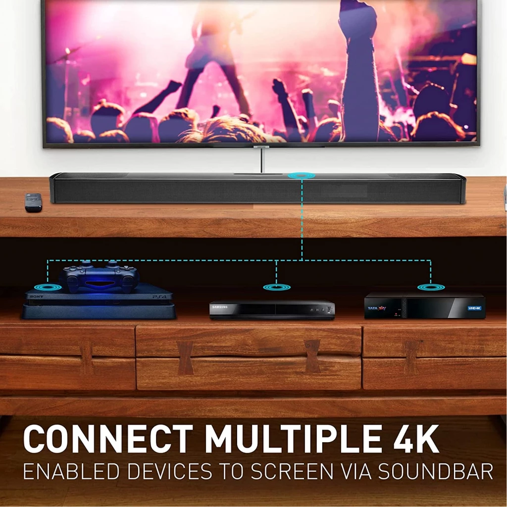 JBL 9.1 Channel Soundbar, 820W 3D Sound Home Theatre System, 4K Ultra HD Dobly Vision With HDMI Port, Bluetooth & Built in Chromecast Sound Bar – Black 820W Output power With 820 Watts of system output power, you’ll hear your movies, games and music like never before. Let the immersive, powerful sound take your viewing or gaming experience to the next level. Ultra HD 4K Pass-through with Dolby Vision Incredible 4K video resolution deserves incredible sound. The JBL Bar 9.1 soundbar makes the ultimate dynamic duo when paired with your TV. Bluetooth Wireless Streaming Not in the mood for a film or game? No problem. With the JBL Bar 9.1 soundbar you can also enjoy wireless music streaming via Bluetooth from your mobile or tablet. Detachable speakers Built-in batteries mean audio freedom. Place the two detachable surround speakers anywhere in your room to enjoy an incredible audio experience. After 10 hours of playback, simply dock them to the soundbar to recharge. Chromecast 2 built-in Built-in Wi-Fi and compatibility with Chromecast means you can stream all your favorite online music in high clarity with a simple finger tap. Thrilling bass Punchy, precise bass from a mighty 10″ wireless subwoofer brings the action to your action movies and the emotion to your music.