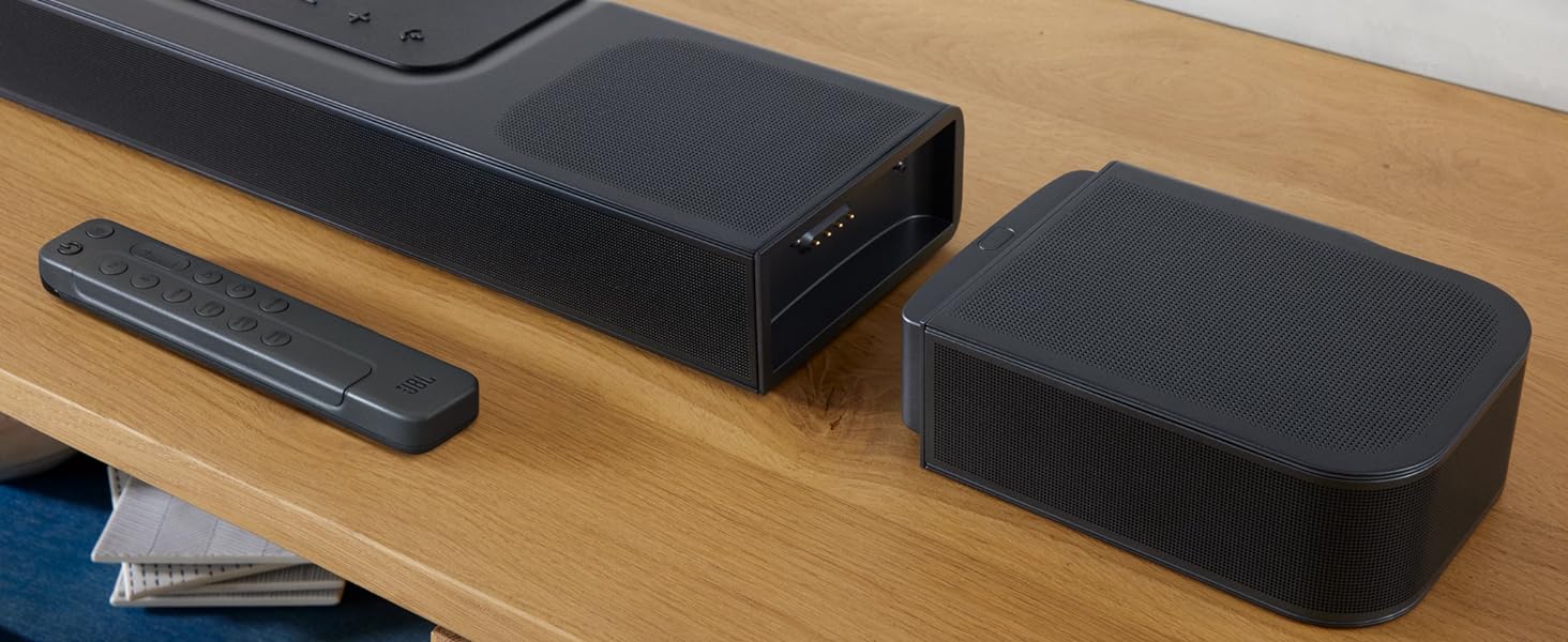 From the manufacturer Panoramic 3D Surround Sound JBL BAR 1000 The JBL Bar 1000 has MultiBeam and four up-firing drivers—including two in the detachable surround speakers—to envelop you in a sphere of Dolby Atmos and DTS:X 3D surround sound. You’ll never miss a word with our PureVoice technology, which makes sure the dialogue is always clear.