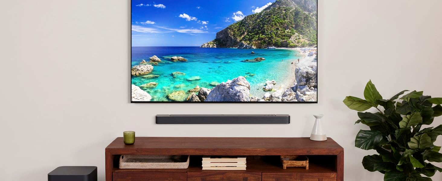 Key Features: Dolby Atmos and MultiBeam Surround Sound: Immerse yourself in theater-quality 3D surround sound. Hear extraordinary sound effects from everywhere in the room, without the need for extra surround speakers. Built-In Wi-Fi with AirPlay, Alexa Multi-Room Music and Chromecast built-in: Get ready to explore. Access over 300 online music streaming services through AirPlay, Alexa MRM and Chromecast built-in. Enjoy all of your favorite audio content, Internet radio, and podcasts in high definition. The Wi-Fi connection also allows automatic software updates, so you can always enjoy the latest features. With 590 watts of total system output power, the JBL Bar 500 transforms your movies, music and games into immersive sound experiences. 10″ Wireless subwoofer: Thrilling, precise bass from a mighty 10″ wireless subwoofer brings the action to your movies and the emotion to your music. PureVoice Dialogue Enhancement Technology: PureVoice technology uses our unique algorithm to optimize voice clarity to ensure you never miss a word of dialogue, even when the surround effects are at their peak.