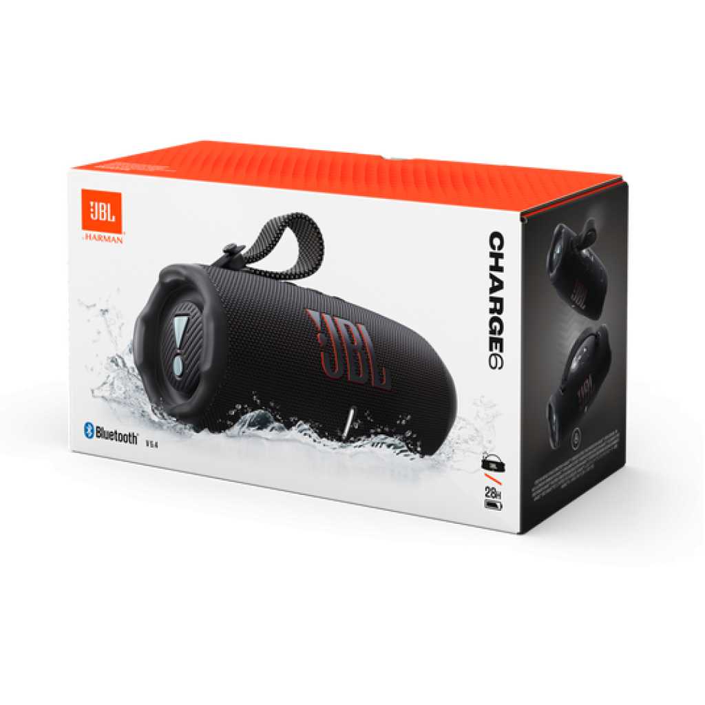 JBL Charge 6, Powerful Pro Sound with AI Sound Boost, Up-to 28 Hours Of Playtime, Multi-speaker Connection By Auracast™ Powerful JBL Pro Sound with AI Sound Boost How does the already great JBL Charge sound profile get even better? It helps that we have some of the best engineers in the game retooling our kit to deliver our most realistic sound reproduction yet. Surprisingly rich, powerful bass and crisp higher frequencies give the Charge 6 a whole new reason to humble brag. We also added our new proprietary tech, AI Sound Boost, which analyzes your music in realtime to deliver maximum acoustic performance with less distortion. It’s like our own little audio genie in every Charge 6. All-in-all, the Charge 6 comes out swinging, with bigger booms and baps, cleaner belts and claps, and everything in between.