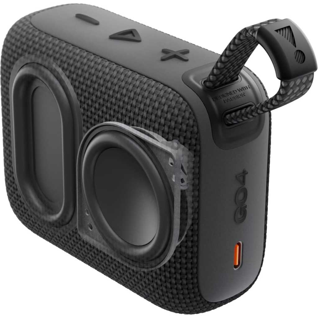 JBL Go 4 The bold, colorful JBL Go 4 ultra-portable Bluetooth speaker fits in the palm of your hand, delivering clear, loud JBL Pro Sound with rich, punchy bass. Its newly redesigned integrated loop makes it easy to bring anywhere. Plus it’s waterproof and dustproof, so it loves to go outside. And up to 7 hours of playtime mean it will keep the good times rolling throughout a fun day trip or an evening chilling under the stars.
