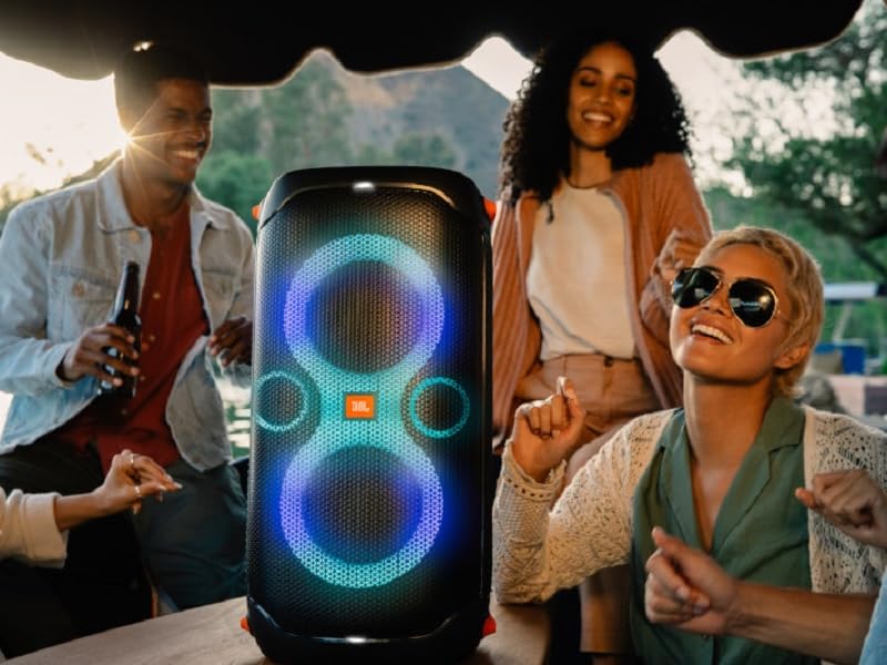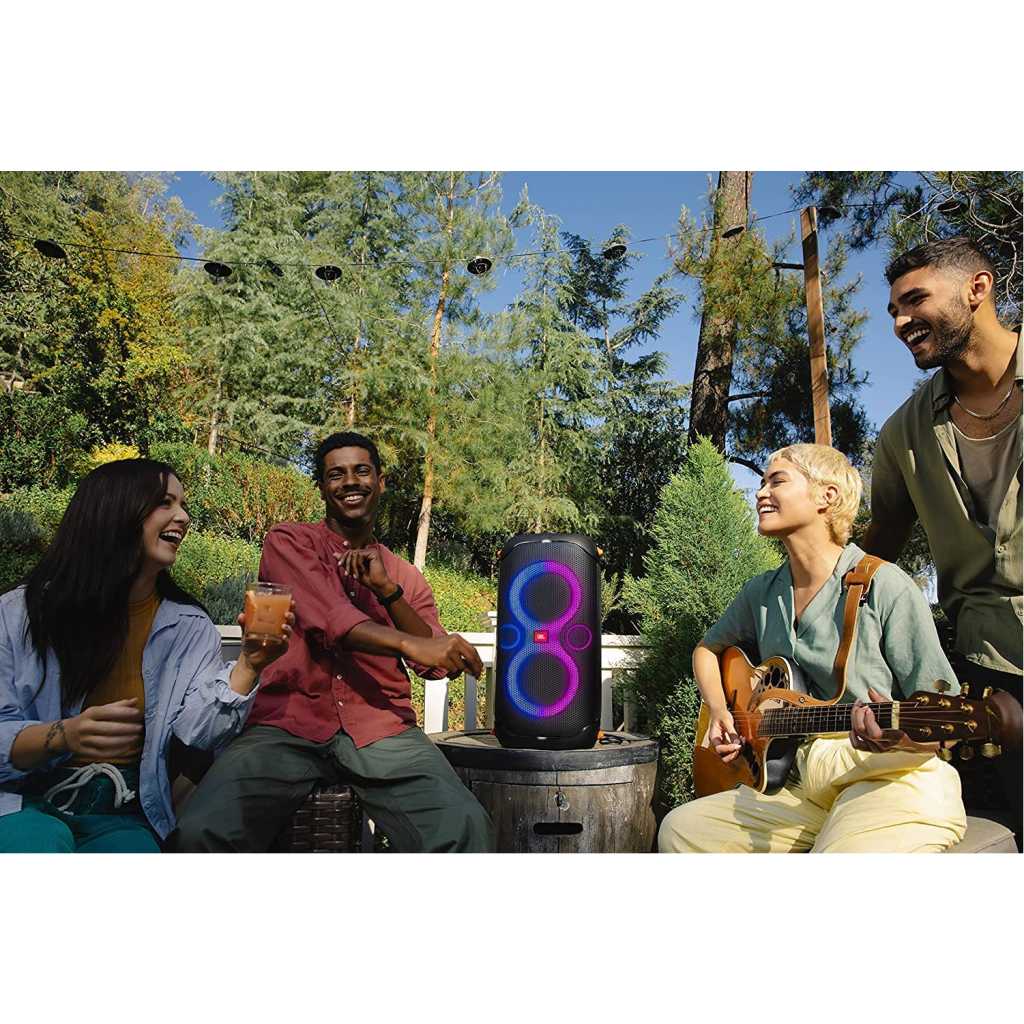 Key Features: JBL PartyBox 110 – Portable Party Speaker With Built-in Lights, Powerful Sound, And Deep Bass – Black. POWERFUL JBL ORIGINAL PRO SOUND: Whether you’re at home or outdoors, the JBL PartyBox 110 makes your music amazing with two levels of deep, adjustable bass and 160W powerful JBL Signature Sound. 12 HOURS OF PLAYTIME AND PORTABLE DESIGN: Power the party all day or all night. With 12 hours of playtime and a built-in rechargeable battery, the beat will go on (and on) IPX4 SPLASHPROOF: Whether your guests are dancing on the beach or sipping drinks by the pool, the JBL PartyBox 110 is IPX4 splashproof so you never have to worry about the party getting too wet and wild. PARTY BOX APP: The JBL PartyBox app makes it easier than ever to control your music, update settings, and customize the colors and patterns of your light show for the perfect party vibe. PARTY LIGHTS: Every kind of music is better with a dynamic light show. Colors synched to the beat make you want to move your feet, while customizable strobes and patterns dazzle your eyes. It’s a unique, immersive audiovisual experience that transforms any party into a work of art.