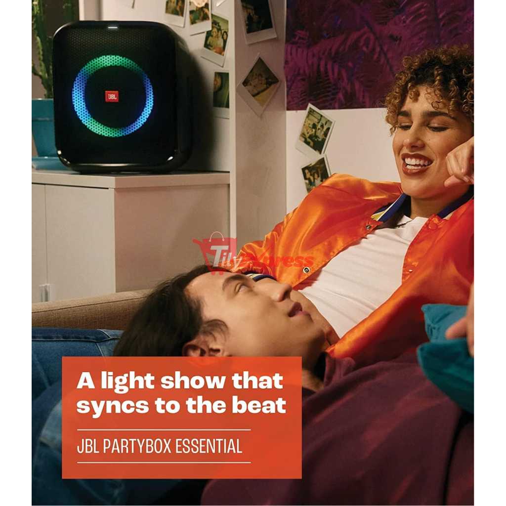 Key Features: JBL Partybox Encore Essential: 100W sound, built-in dynamic light show, and splash-proof design. Nothing beats incredible JBL Original Pro sound with deep bass. The dynamic light show offers a fun ring light and a cool strobe effect that syncs to the beat of your music. No plug? No problem. The JBL PartyBox Encore Essential keeps the party going wherever you are with up to 6 hours of play time. Dancing on the beach? Poolside party? The JBL PartyBox Encore Essential is IPX4 splashproof, so you never have to worry about the party getting too wet or wild. A JBL PartyBox is not enough? Pair two speakers wirelessly with True Wireless Stereo (TWS) technology for even bigger, bolder sound.