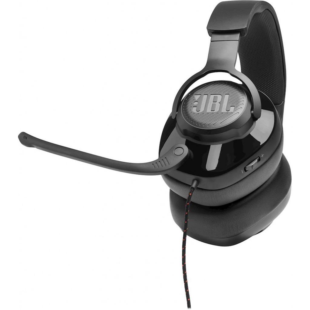 JBL Quantum 200 Gaming Headphones, Wired Over Ear Gaming Headphones with mic – Black Communicate with your team by using this JBL Quantum over-ear wired gaming headset. QuantumSOUND Signature technology delivers refined audio for an immersive experience, and memory foam ear cushions offer all-day comfort. This JBL Quantum over-ear wired gaming headset features Echo Cancellation technology that eliminates reverberations, and compatibility with Windows Sonic enables virtual spatial sounds.