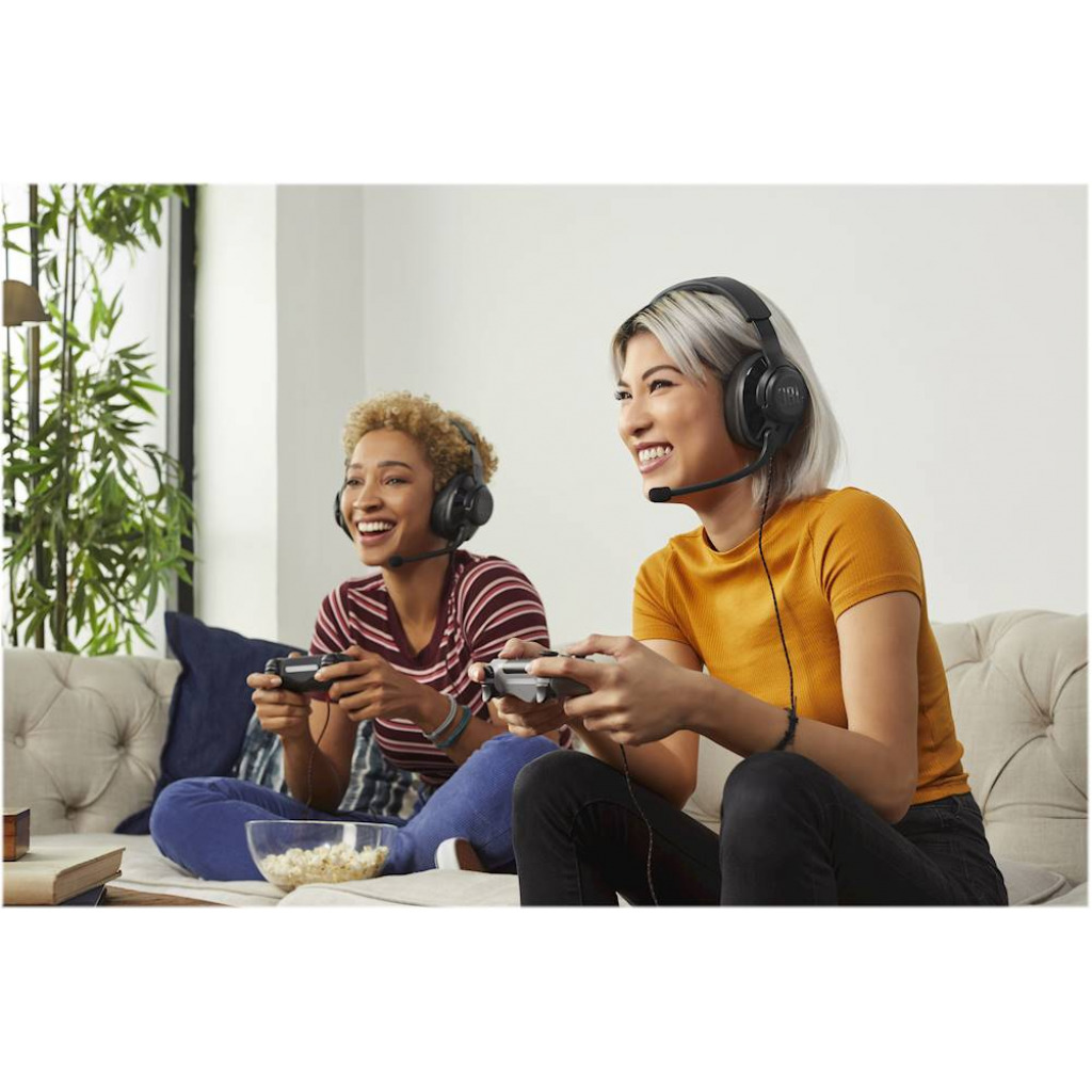 Key Features: JBL Quantum 200 Gaming Headphones, Wired Over Ear Gaming Headphones with mic – Black 50mm neodymium drivers delivering JBL Quantum Sound Signature. The lightweight headband and memory foam ear cushions. Designed for comfort even during the longest gaming sessions. Compatible with all gaming platforms including PC gaming, Xbox, PlayStation, Nintendo, Switch, Mobile, Mac and VR.