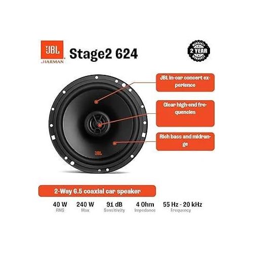 JBL Stage2 634 6.5" (160mm) 40W RMS 250W Peak 3-Way Car Speaker Set - Powerful Upgrade for Factory Sound System Clear High-End Frequencies speaker Car Vehicle Audio System Set