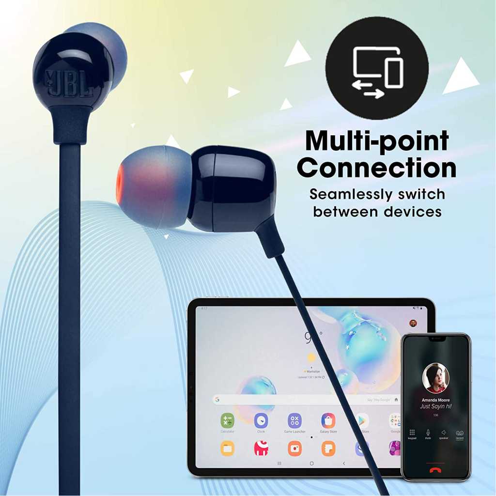 Key Features: JBL Tune 125BT by Harman in-Ear Bluetooth Headphone with Built-in Mic, 16 Hours Playtime, Bluetooth 5.0, Dual Connect, and Quick Charging (Blue). JBL Pure Bass Sound 16 Hours of playtime under the optimum audio setting Quick Charging – 15 min of charge provides one 1 Hour Playtime and while overall charging takes less than 2 Hours Multi-Point Connectivity allowing Seamless Switch Between two Devices Seamless connectivity with Bluetooth 5.0