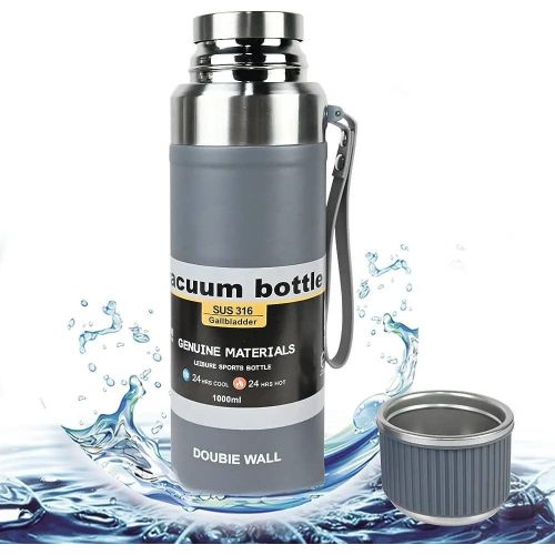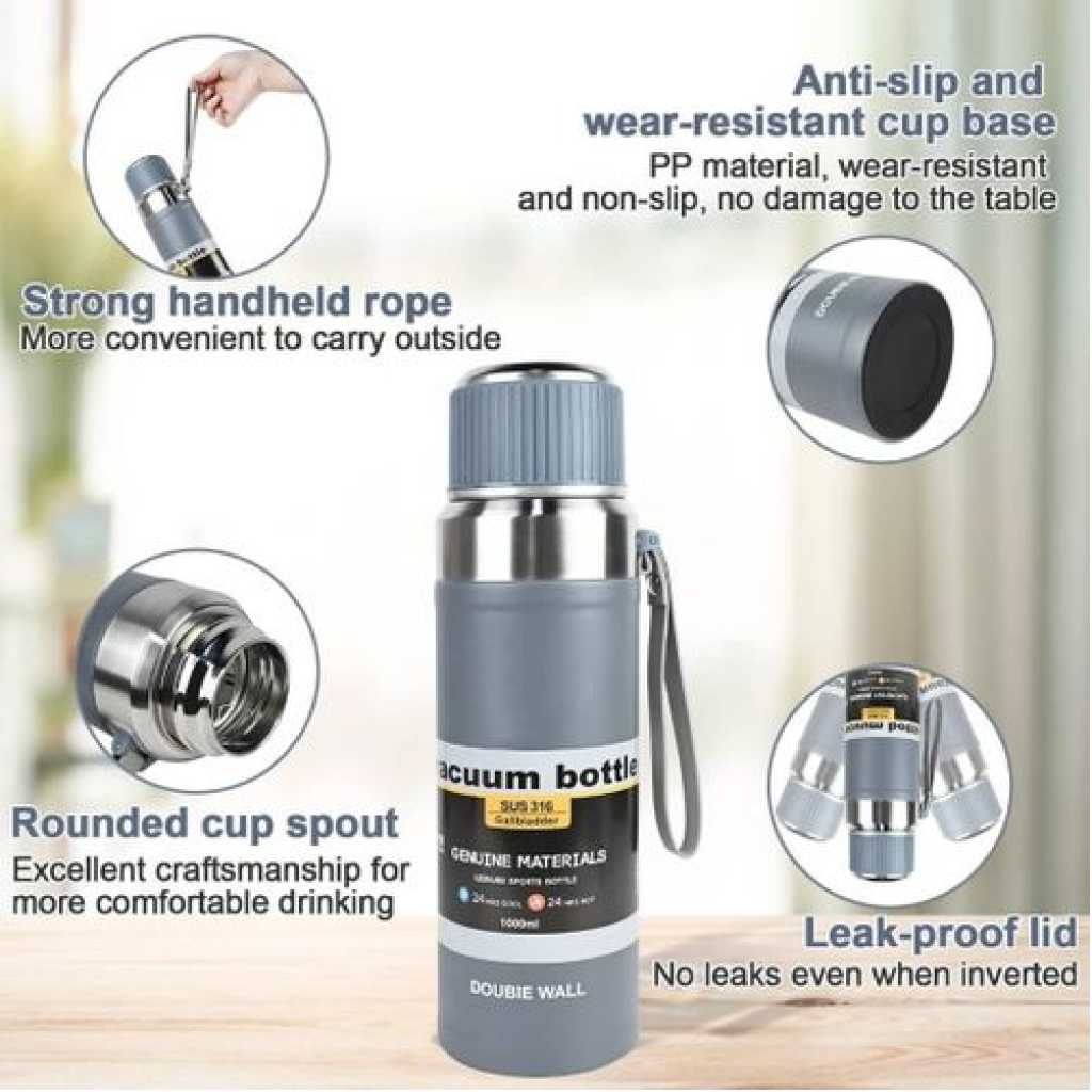 The thermos is made of 304 stainless steel and food grade material, which is more insulated and environmentally friendly. In the 24-hour test, the temperature drops from 99 degrees to 65 degrees, and the thermal protection effect is very good! Vacuum insulated water bottle with high performance thermal protection, can keep water cold for 48 hours and hot for 48 hours. 304 stainless steel food grade steel. 304 food grade stainless steel has anti-oxidation and anti-corrosion properties and never leaves a metallic taste or rust.. 100% leak proof and easy to clean. No leaks, no plastic smell. Daily use, running, hiking, camping, etc. suitable for Features: Material: food grade 304 stainless steel Waterproof rating: IPX4 Volume: 1000 ml Size: 26cm*8.5cm The package includes: 1 x Thermos Product type: Thermos