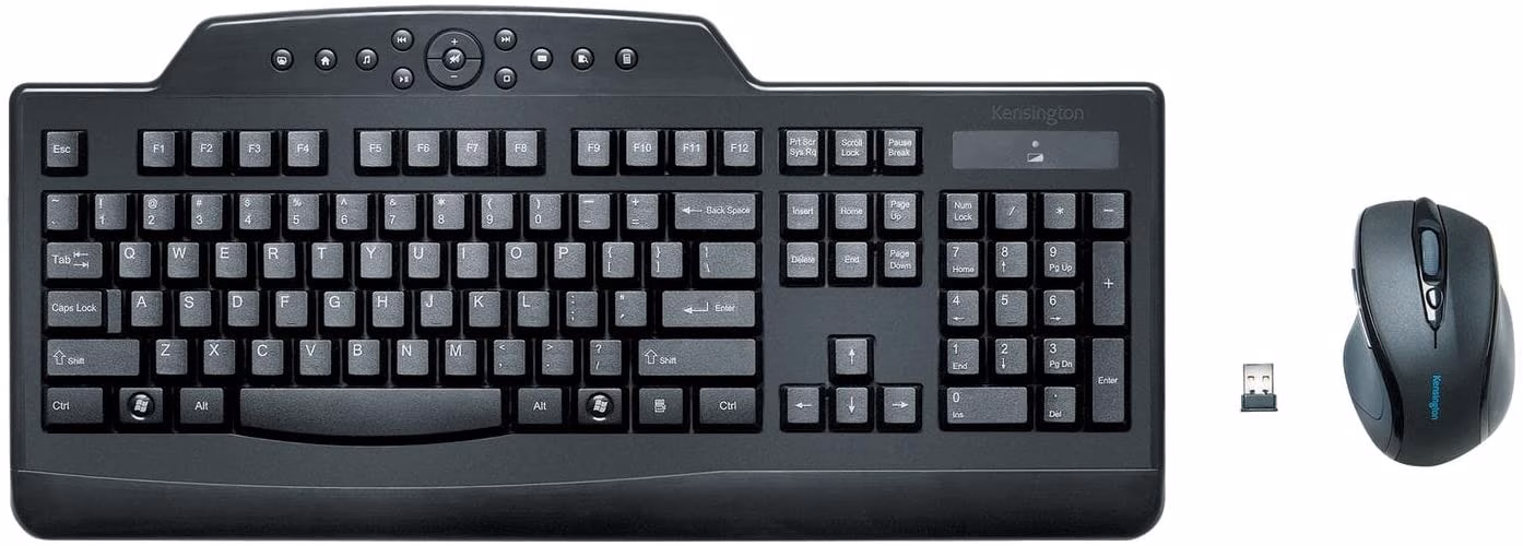 The Kensington Pro Fit Wireless Desk Set offers a full-size keyboard for increased productivity and comfort. A height-adjustable keyboard provides improved typing and a medium-sized right-handed mouse offers ergonomic comfort. And wireless technology provides users with a clutter-free workstation while dedicated keys offer fast Internet and multimedia access. A spill-proof keyboard resists coffee, water, soda and other liquids. Offers reliable plug-and-play operation with a wired USB connection.