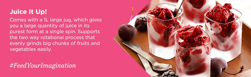 Key Features: Number Of Speeds: 1 Juice Container: Yes Power: 150W Usage: An effortless way to engage in a healthier lifestyle through consuming 100% natural juice, by slowly crushing ingredients Pure Juice can extract up to 80% juice and retains maximum taste, colour and nutrition Capacity: Juice jug is 700 ml and 1 litre air capacity No Drips: Anti-Drip stopper for no spillages or drips Extra Sieve for the option of juice with bits or silky smooth Power: 150W