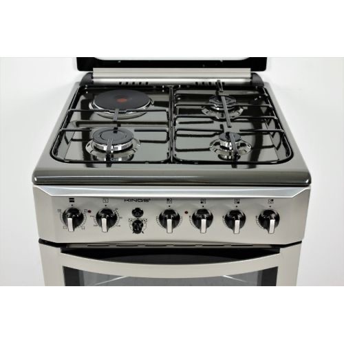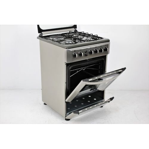 It is 60x60cm Electrical Oven, Up and Down Heating Elements, Thermostat, E Grill 3 Multi gas (Euro Type Pool) Burners + 1 RAPID HP, Push Button Ignition for Hob Burners Glass Top Lid, Bs Plug, Oven Lamp, Rotisserie, Timer Cool Door(Removable inner Glass), 1 Oven Tray, 1 Oven Grid, Adjustable Feet, Glass Flap Drawer Brown Craft Carton Box, Hob Marble Black, Command Panel Matt Inox – Rest Silver Grey Painted. Key Features: 3 Gas + 1 Electronics Burners, Stainless Steel, 60 x 60cm, Marble grey, 2 Years Warranty,