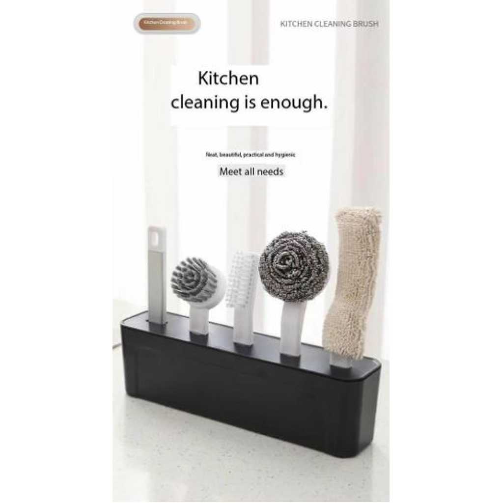 Kitchen Cleaning Kit Folding 4 Type Brushes For Cleaning All Utensil Of Kitchen- Multi-colour Kitchen Cleaning Tools Kit is the Pedestal receives the use sanitation. Clean and Beautiful Exquisite Kitchen Style of Life. Detachable Handle Easy head Change Easy Disassembly and Assembly. Preferred Material Smooth without Burrs and Durable Design of Drain Hole Prevent Wet Tabletop sanitation does not accumulate water. It is a simple but effective design, and it works without scratching. The foam holds soapy lather well for lengthy cleaning. A free-standing and solid handle. Strong and sturdy. It’s good for prewashing/rinsing dishes prior to cleaning and also for final washing. Its sponge fits into most bottles and glassware, does a good job cleaning, and works just as well as a scrubber of pots and pans. The little scrubber on the end is GREAT, you start using this on glasses, and next, you start using it on plates and everything. It is a very useful product as it cleans the bottom, corners, and sides without having to crush your hand.