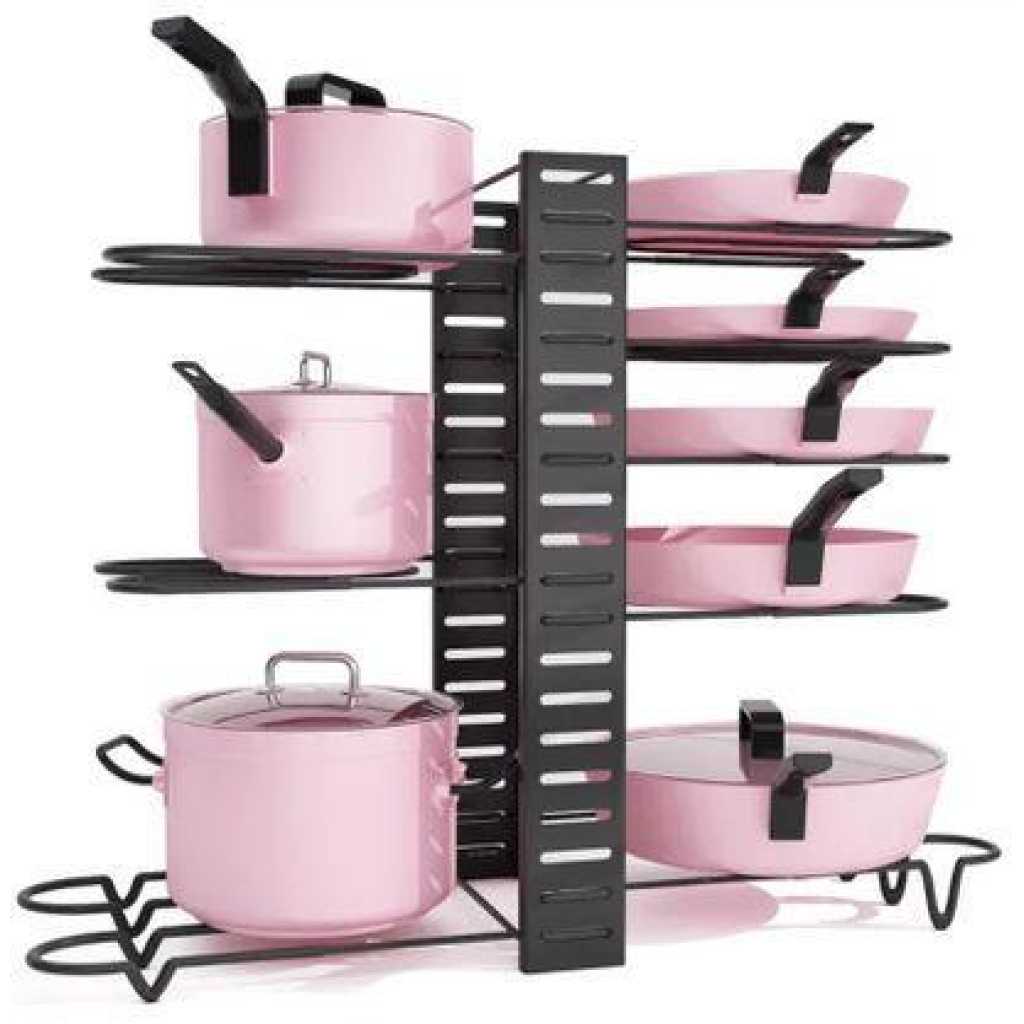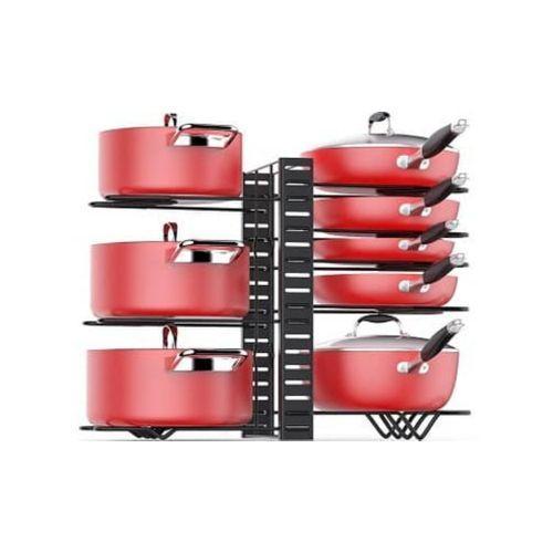 Key Features: 【8-Tier Iron Tiers】:Our pot rack with 8 large removable tiers allow you to customize for larger pans. This heavy duty storage rack for kitchen,the pot and pans rack is made of premium, durable, sturdy metal that is easy to clean and protects your pans from scratching each other. 【Free Adjustment】:The saucepan storage can freely adjust the position of the card slot according to the thickness of the pot, without restriction. The saucepan organiser for cupboard will keep your kitchen tidy. 【Removable Storage】:The saucepan rack support frame can be moved according to the needs, and the pots and pans organiser is convenient for storage.This kitchen cupboard storage organiser does not occupy space. 【Excellent Storage Organization】:Best pan organiser for your Lids, Pots, Pans, Cast Iron Skillet, Griddles, Baking Pan, Cutting Boards, and Serving Trays with this Amazing Rack that can be used Vertically or Horizontally on your Kitchen Counter or in your Cabinets. 【Free Gift】:The kitchen organiser comes with 1pcs microfiber cleaning cloth.You can dust, scrub, clean, polish, and dry your entire home, office and car! Clean everything, even windows and dishes.