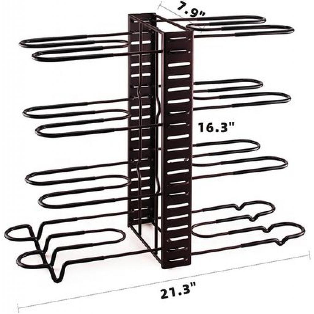 Simple houseware pots and pans rack is a perfect addition to your kitchen. This pots and pans rack us designed for storing lids and narrow pans in the kitchen or pantry. The simple houseware pots and pan rack holder is small and slender is design. The rack holder doesn’t take up much space in your kitchen or pantry. Simple houseware pots and pans and lid rack comes with convenient handles and holes to store them efficiently. The rack holder is made of copper that can stand freely on a flat surface like kitchen counters or pantry shelves. The simple houseware rack holder includes five separate dividers for storing multiple pans and pots. The rack holder can be placed vertically as well as horizontally for storing pots, saucepans and their lids. For additional security, the rack holders include an opening or interesting a screw and get it fixed to a place. The screw hole and hardware for fixing the rack is included in the package