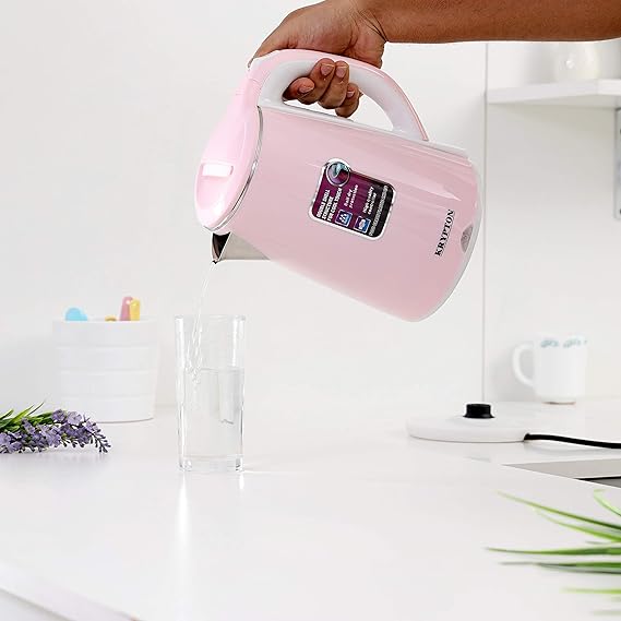 Krypton 1.8L Cordless Electric Kettle 1500W KNK6062, 360 Degree Rotational Base, Detachable Base, Concealed Heating Element, Auto Shut-off, Dry Boil Protection, Double Layer Stainless Steel, Cordless, Rapid Boil Krypton 1.8L Cordless Electric Kettle – One of those handy items with a long lifespan and adequate heating! A stylish Choice. The Krypton Electric Kettle provides you with a stylish design Textured Kettle combining a high-quality glass material for a rich feel meaning it will bring style to any kitchen worktop. The large, 1.8-liter capacity means you’ll have plenty of hot water for any large family or team or work colleagues. Filling the large kettle is also easy thanks to the open lid design. It is a 1500W, kettle that boils quickly and quietly, even when it is at full capacity. Boil Up to 7 Cups in One Go This kettle features rapid boil action, meaning your water will be ready in no time, and a generous 1.8L capacity, allowing you to make up to 10 drinks with just one use. You can also easily keep an eye on the water level, thanks to the clear water window. Stylish Design, Stainless Steel Inner – This electric kettle is made of strong double layer housing with stainless steel inner body which is distinguished by durability and the outer beautiful design makes it stylish. AUTO SHUT-OFF & BOIL-DRY PROTECTION – Automatic shut off function upon boiling and the boil-dry protection prevents it boiling if there is insufficient water present. 360° ROTATIONAL BASE – To keep the kitchen tidy, the base has integrated cord storage so it can be tidied away at your convenience & the handy 360° base means it can be comfortably used by right & left-handed people. CAPACITY 1.8L – The capacity is 1.8L so will be good size for the family. Large size for making multiple cups of tea or coffee. To make pouring comfortable and easy the kettle features an ergonomic handle. DETACHABLE BASE, CONCEALED HEATING ELEMENT – To keep the kitchen tidy, the base has integrated cord storage so it can be tidied away at your convenience. STAINLESS STEEL – This electric kettle is made of stainless steel and is distinguished by their durability and makes a healthy kitchen appliance to heat up water, and it is also very easy to clean.