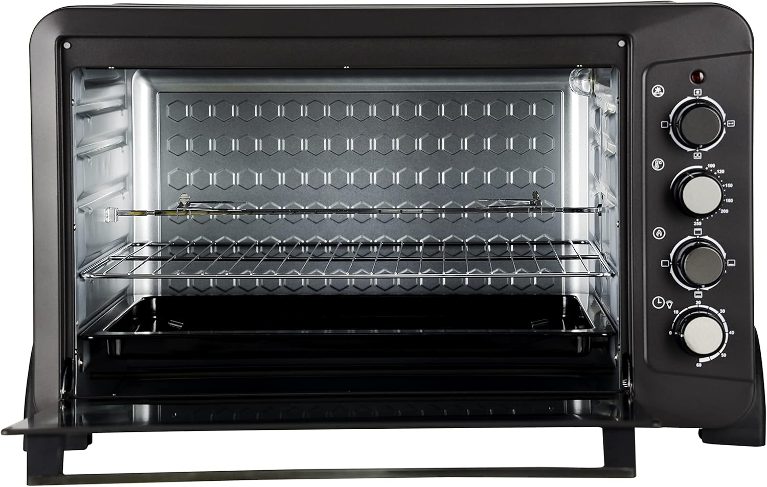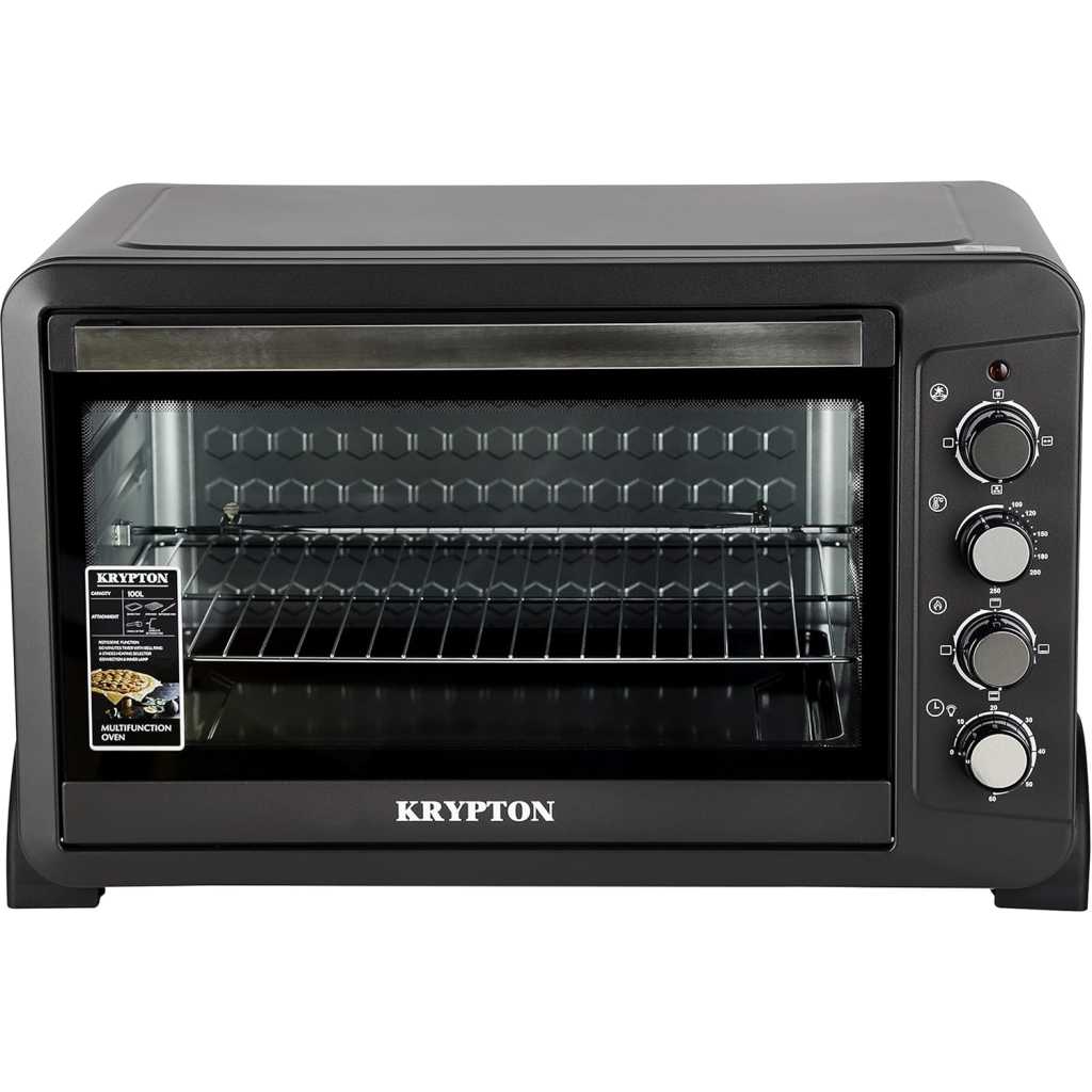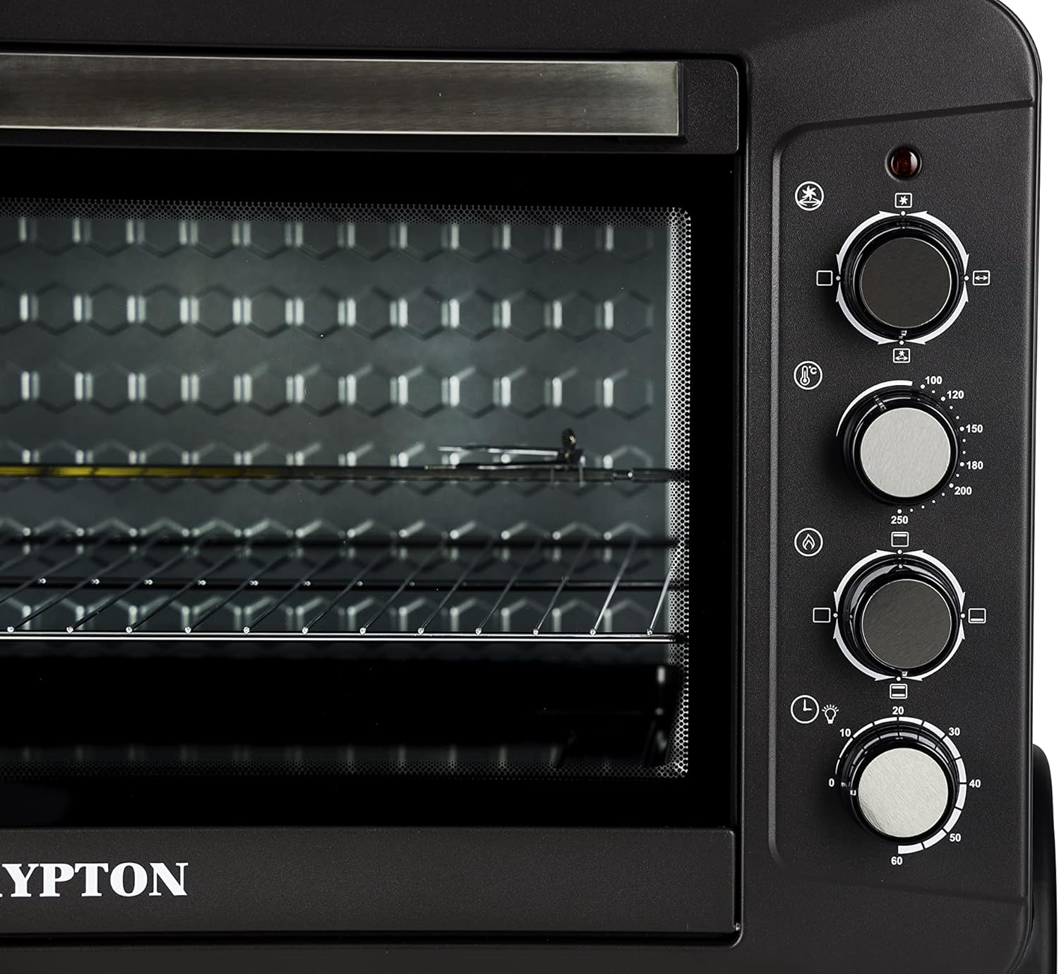 Krypton Electric Oven With Rotisserie & Convection60Mins Timer And Shut Off Bell – For Your Convenience, A Special Switch Is Built Into The Appliance That Allows You To Detect The Time Until The End Of The Cooking Process. You Can Turn On The Electric Grill, Set The Timer, And Leave The Appliance To Cook By Yourself. At The End Of The Cooking Process, You Will Be Reminded Of The Corresponding Call.Beautiful And Smart Design – The Advantage Of This Compact Electric Oven With Rotisserie Convention Is Its Simple And Beautiful Appearance. The Surface Of The Modern Machine Is Completely Elegant And The Individual Parts, Such As Selectors, Are Unobtrusive Grey. It Is Perfect For Any Kitchen And Complements Your Interior.Tough Door – Through The Glass Door, You Can Observe The Cooking Process Of Your Dish. Thanks To The Layers Of Glass, The Temperature Will Be Maintained Inside The Baking Machine. The Dish Will Remain Hot For Some Time After Cooking.Convection Baking – Convection Baking Allows For Much Faster Cooking Times As Well As More Consistent Heating For Superior Results. This Convection Microwave And Grill Can Bake Or Roast With And Without The Microwave Function.Rotisserie Function – With This 100L Oven, You Have The Unique Opportunity To Taste Delicious Meat From The Fire, While At Home. The Kit With The Device Includes Special Accessories For Rotisserie Cooking. All You Need To Do To Get A Delicious Chicken Or Steak Is To String The Meat On A Long Hardcore And Place It In This Mini Grill.’.