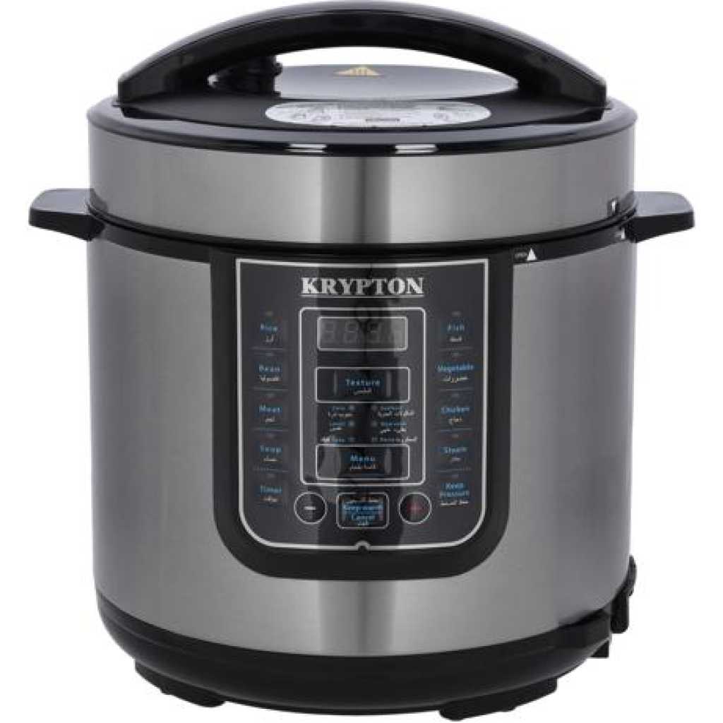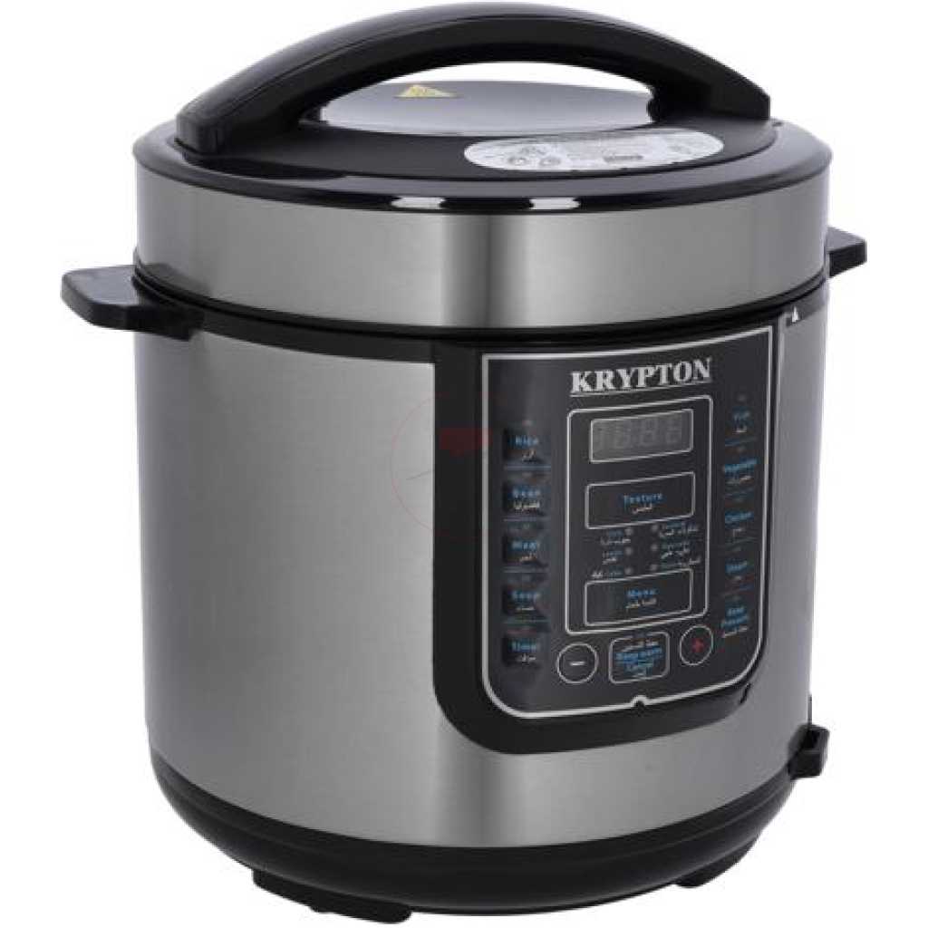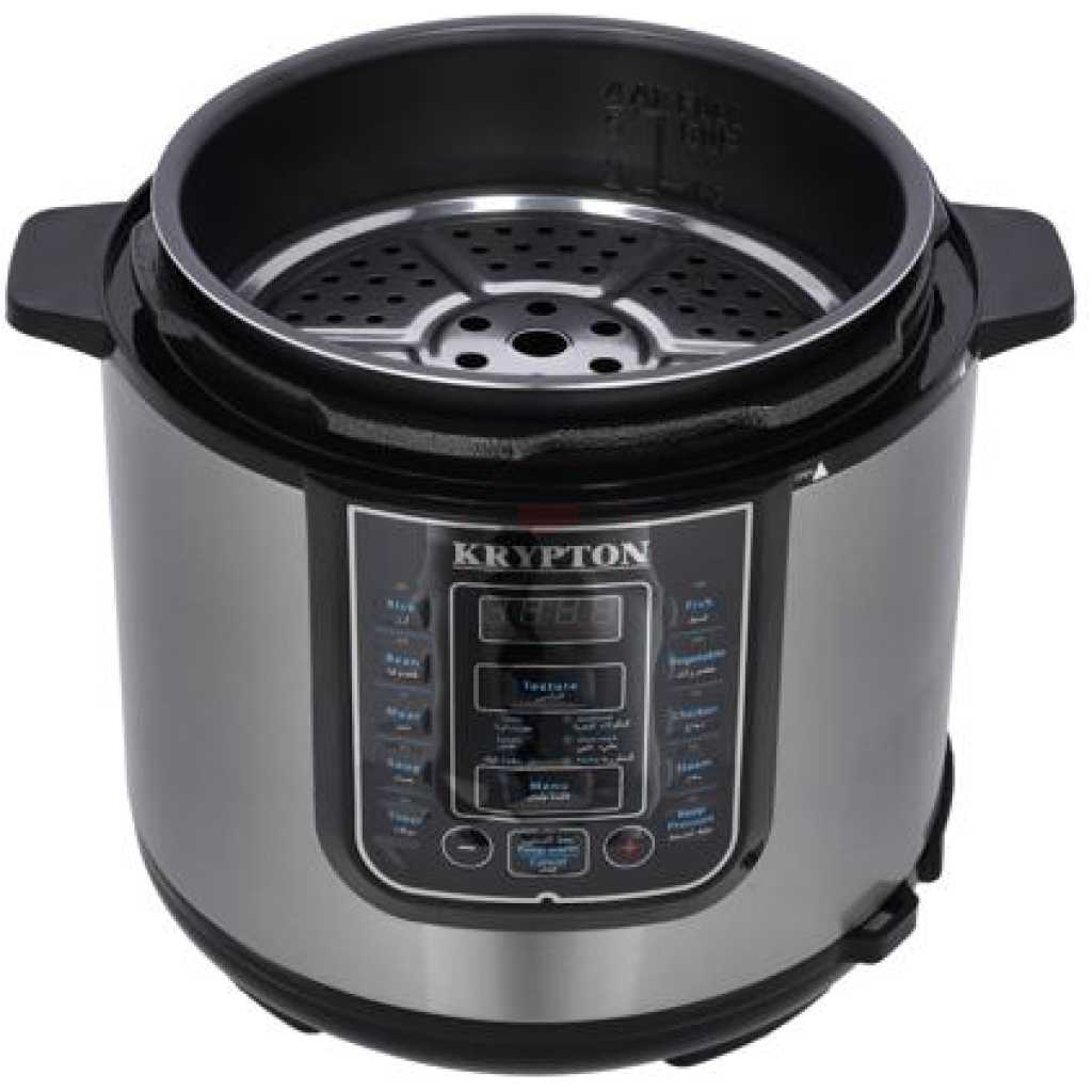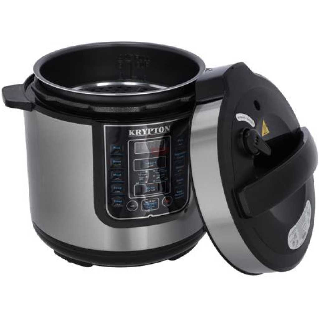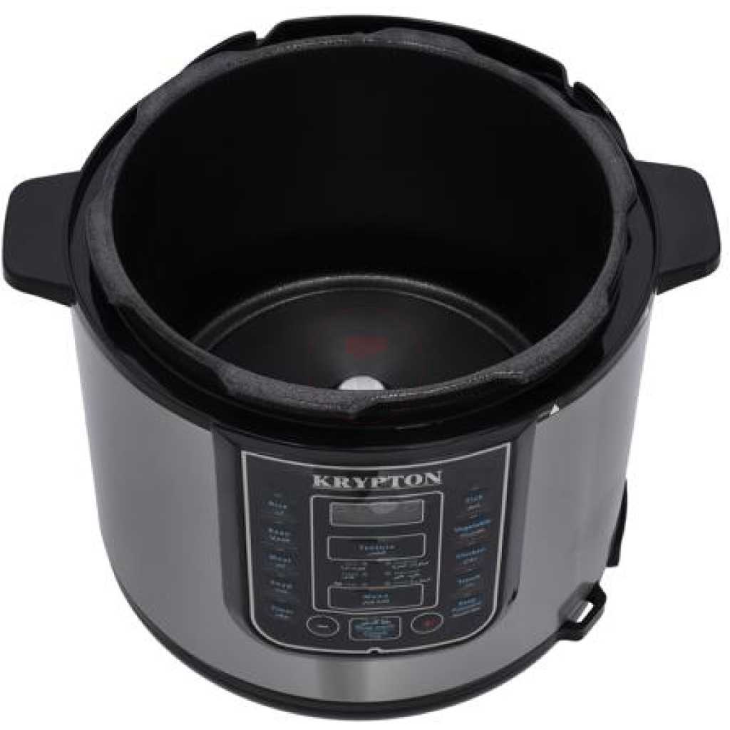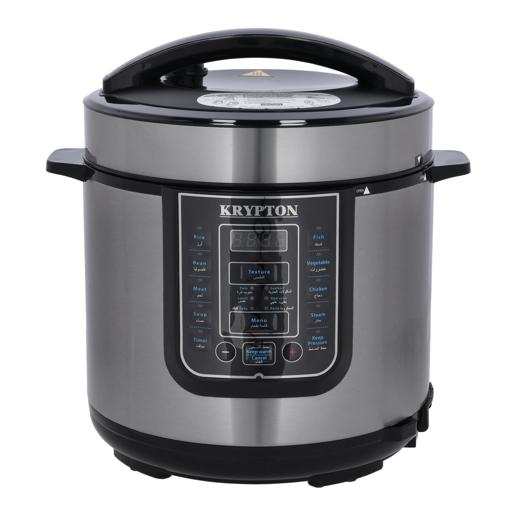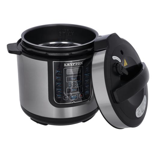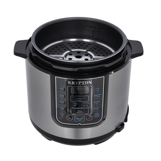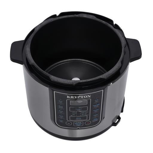 Key Features: Krypton 6 L Multi-functional Electric Rice, Pressure Cooker KNPC 6297, Silver Multi Function Automatic Cook One touch preset buttons/Automatic. Safe Lock Lid with Steam release/ Non stick Inner Pot. Replaces six common devices: Slow cooker, Canner, Soup Maker, Steamer, Cookware and Rice Cooker. Alumnium inner pot.