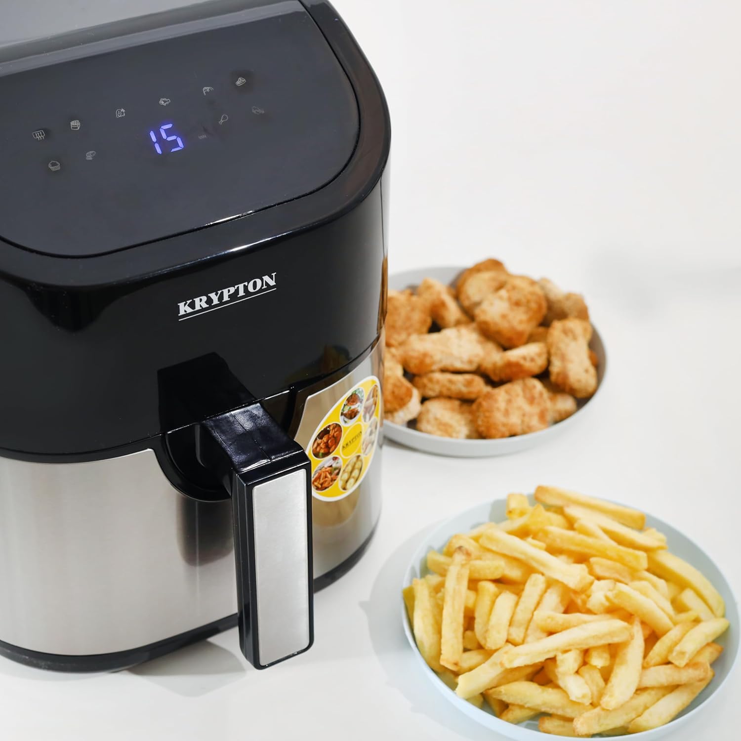 Krypton KNAF6227 1500W Digital Air Fryer 3.5L Hot Air Circulation Technology for Oil Free Low Fat Dry Fry Cooking Healthy Food TOUCH SCREEN LCD DISPLAY – This device has a touchscreen LCD display. It lets you adjust the timer, the temperature and lets you know of the cooking progress. DOUBLE PROTECTION CIRCUIT – Double protection circuit ensures maximum safety. This device is layered, and you can check on your food while it is being fired. 60 MINUTES TIMER – The timer can set up to maximum 60 minutes. You can choose and adjust it according to the cooking requirements. Once set, it will heat up to the required temperature and start cooking. TEMPERATURE CONTROL SYSTEM OF 80 TO 200C – This fryer offers a wide range of temperature settings. You can set it at any temperature from 80C to 200C. This plastic body of this device can withstand a very high temperature of 280C. It has a PP housing up to 137C and overheat protection. S/S304 HEATING ELEMENT – This heating element is located in the base of the fryer and ensures even distribution of heat. COOL TOUCH HOUSING AND HANDLE FOR SAFETY – The outer body and handles of the digital fryer are made from non-conducting material and are safe to touch even when the device is cooking.