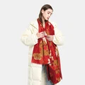 Kvinder Retro Blomst Tie-dye Print Forbind Fashion Kunstig Kashmir Dobbelt Brug Tykk Varme Tassel Tørklæde