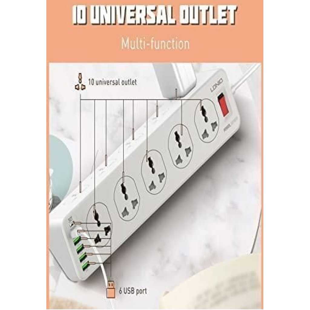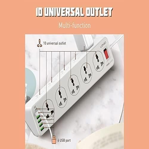 Ldnio Power Extension with 10-Outlet Surge protector power sockets, 5 USB-A, 1 USB-C Ports 30W PD+QC Fast charging adapter sockets 2-meter heavy-duty power Extension Cord