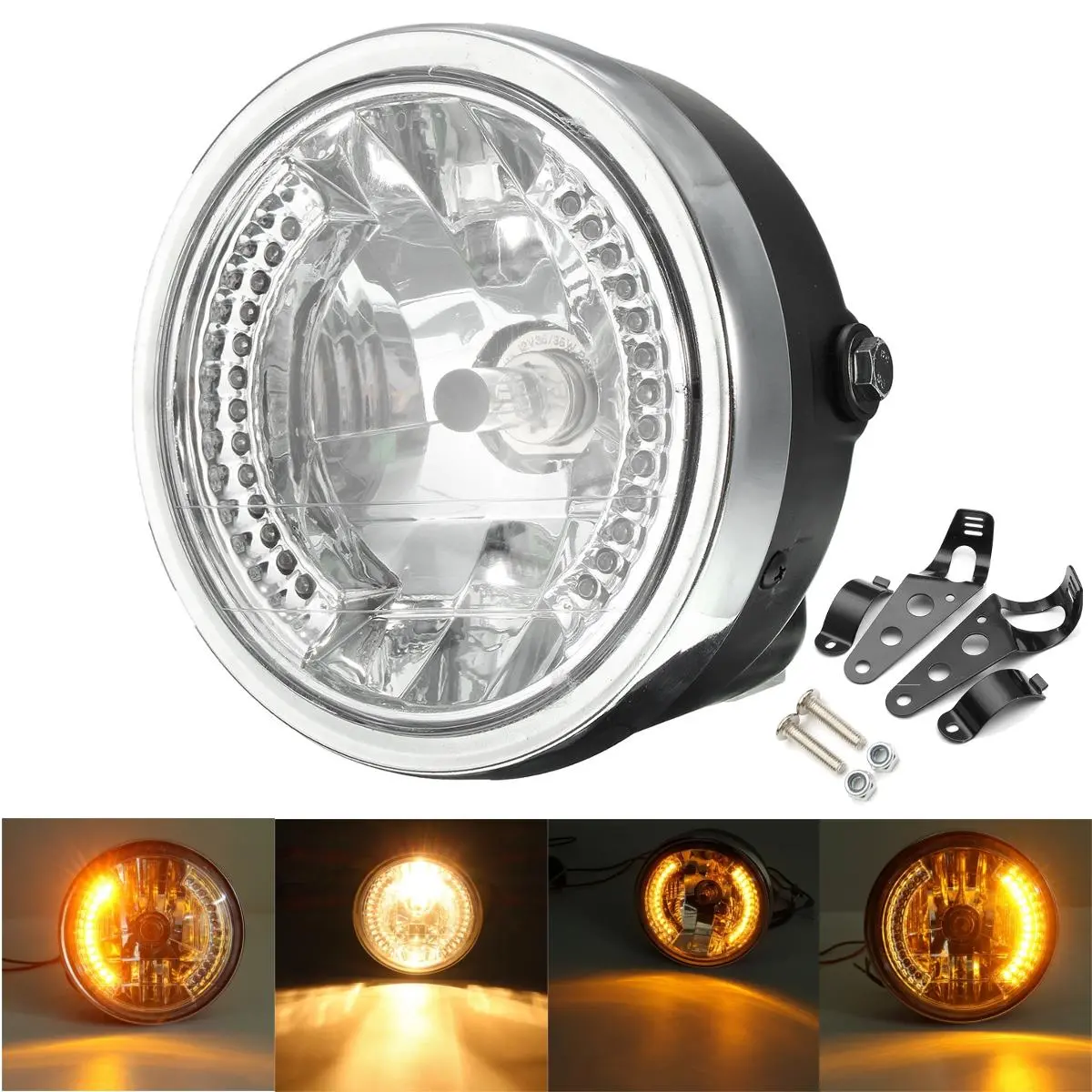 US$40.99 만 도매 가격으로 최고의 LED 신호등 지시기 홀더가있는 8 인치 오토바이 헤드 라이트 판매 온라인 상점을 구입하십시오.