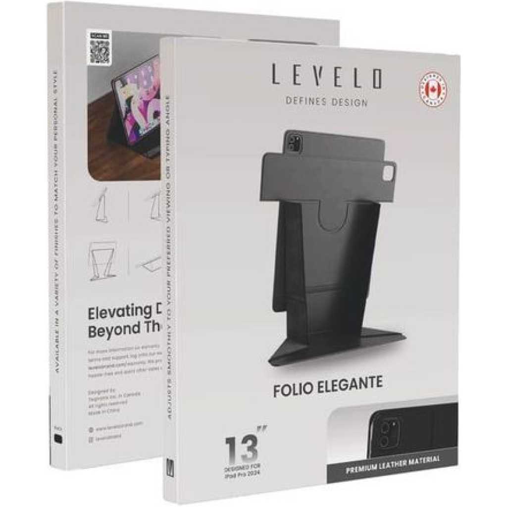 The Levelo iPad Pro 13-inch 2024/2025 case is designed to provide both style and protection for your device. Made with a high-quality PU leather finish, it offers a sleek and sophisticated look while safeguarding your iPad from scratches and wear. The case features a 360° rotation capability, allowing you to easily adjust your iPad to any angle, making it perfect for hands-free viewing or typing. With its multi-fold design, you can position the case in various ways, offering comfort and convenience for different tasks. The stain-resistant material helps maintain the case’s appearance, even with regular use. This case combines functionality with elegance, making it a great choice for anyone looking to protect and enhance their iPad Pro experience. Highlights Material: PU Leather Finish 360° Rotation Multi-Fold Design Stain Resistant
