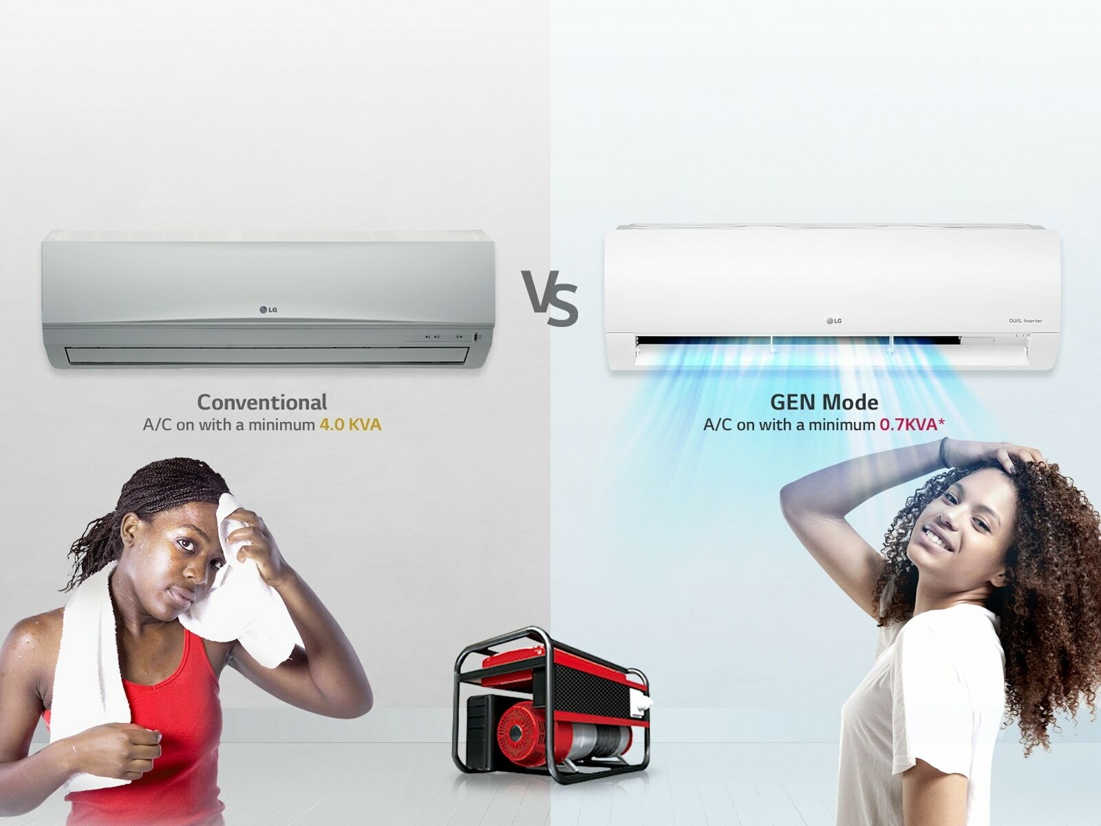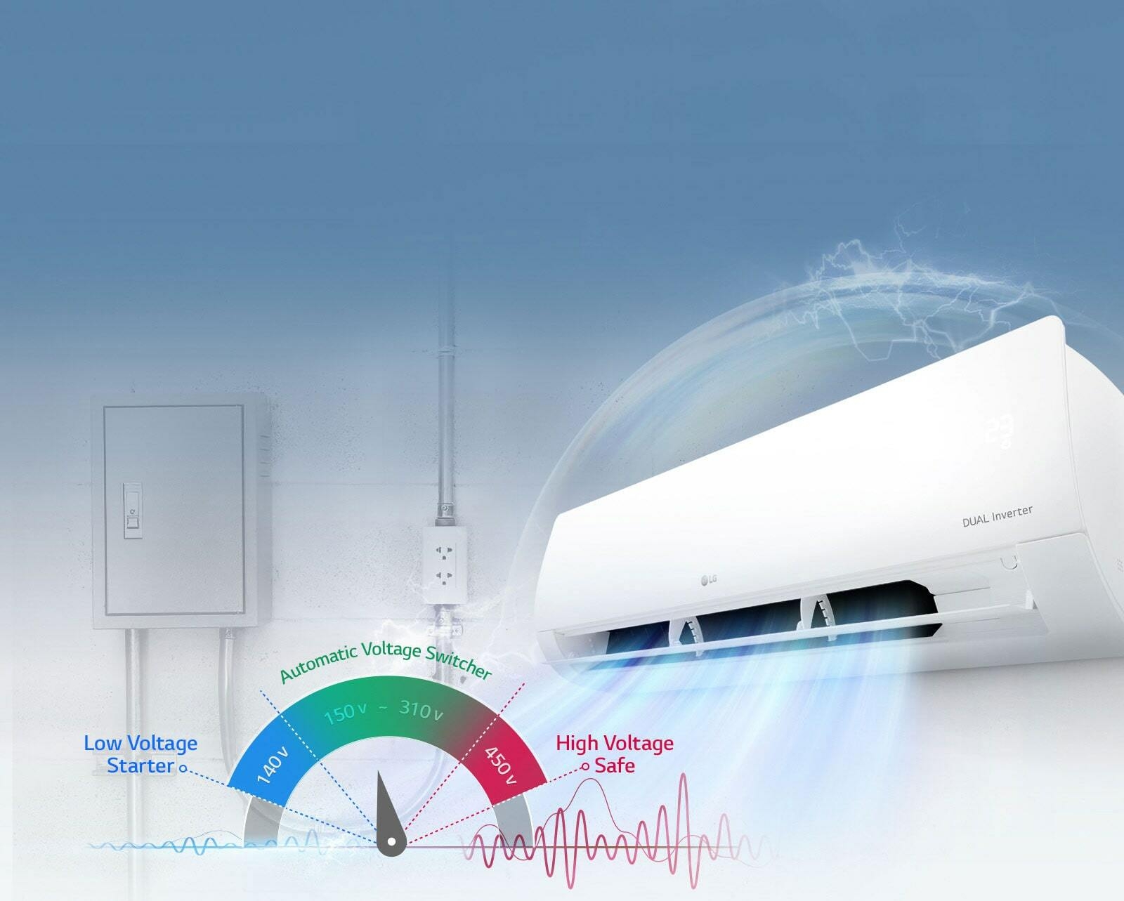 LG R410S4Q12JA3QB (12000 BTU) Wall Spilt Air Conditioner, 12K, R410A Gas – White. Compressors on typical air conditioners turn off and on in order to adjust the temperature, consuming a great deal of energy. Inverter Compressor constantly adjusts a compressor’s speed to maintain desired temperature levels. This minimal fluctuation saves energy and ensures greater cooling comfort. Inverter Compressor constantly adjusts a compressor’s speed to maintain desired temperature levels. Moreover, DUAL Inverter Compressor™ with power saving operation range frequency saves more energy than conventional compressor. Thanks to the DUAL Inverter Compressor™, air is expelled farther and faster. GEN Mode function allows the Air conditioner to operate at lower power levels . Thus, home appliances can be used with air conditioners without disruption. Volt Care protects an air conditioner from potential damage caused by voltage fluctuations. It is composed of LVS(Low Voltage Starter), AVS(Automatic Voltage Switcher), and HVS(High Voltage Safe) technologies. LVS and HVS protects the unit from low and high power supply and AVS allows for stable operation during voltage fluctuation range. The Gold Fin™ ensures that the surface is more resistant to corrosion and enhances the durability of heat exchanger for a much longer period. LG air conditioners operate at low sound levels, thanks to LG’s unique skew fan and DUAL Inverter Compressor™ which eliminate unnecessary noise and allow for smooth operation. LG air conditioner‘s slim and modern design makes easy installation and convenient cleaning with EZ sliding filter. Moreover large hidden display is perfect for checking your energy display conveniently. LG air conditioners are designed for easier and more efficient installation, regardless of the surroundings and the number of persons involved in the installation process. By reducing the manpower and time required for installation, it is now possible to install more air conditioners at more homes in a shorter period of time. LG’s DUAL Inverter Compressor™ solves improper, ineffective and noisy problems, resulting in an air conditioner that cools faster, lasts longer, and runs quieter. With the 10year warranty on the compressor, users can enjoy the benefits of LG air conditioner for a longer period of time.