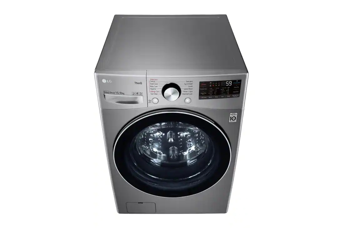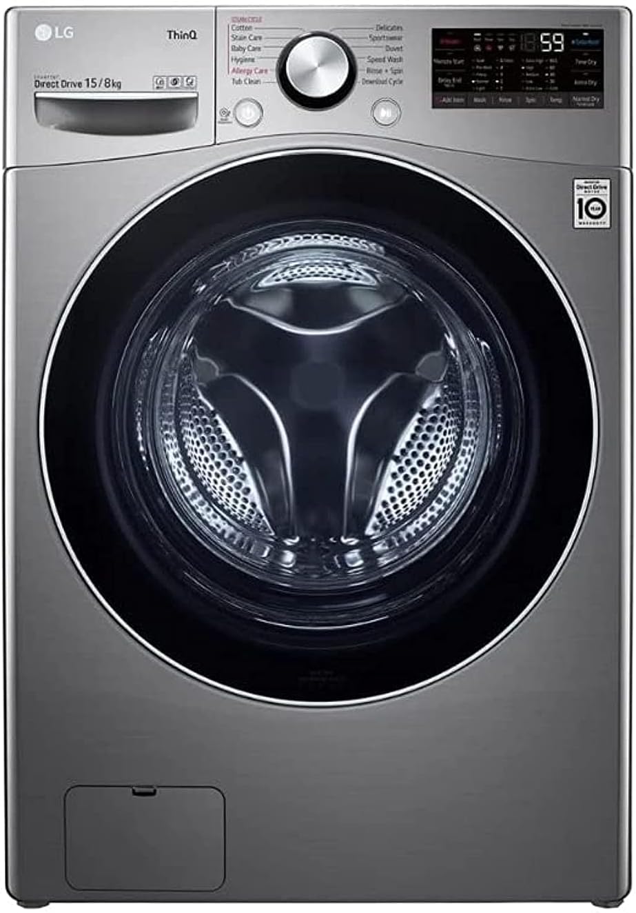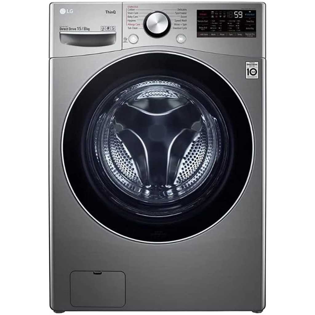LG 15Kg Washer & 8Kg Dryer Front Load, Direct Drive Motor 1400 RPM 12 Programmers Color Silver Model - F0L9DGP2S