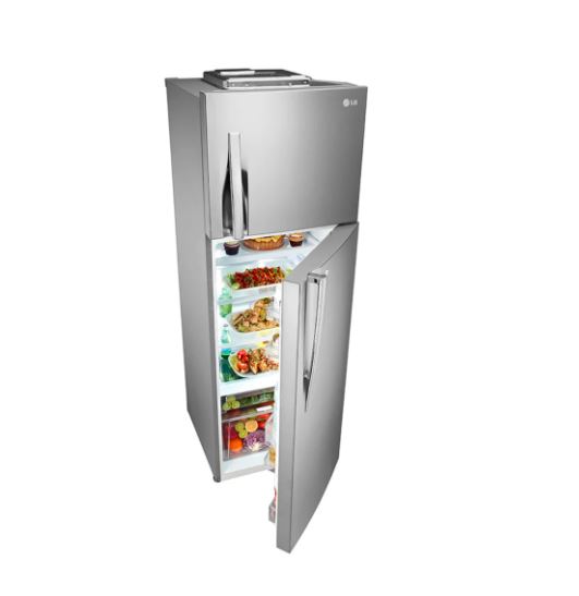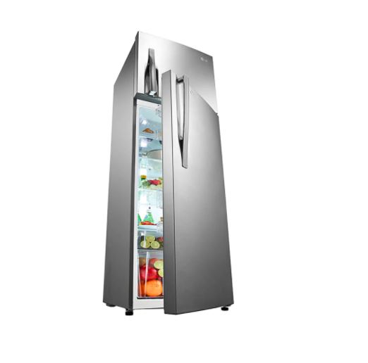 LG 310L-10.95 qft Double Door Fridge – Shiny Silver-GL-C362RLBN. Steady, even temperature every time is a core indicator of freshness. LINEAR Cooling™ makes temperature fluctuation within ±0.5℃. Compared to the refrigerator with LG conventional Smart Inverter Compressor. Based on the UL test comparing temperature fluctuation in time between LGE model B606S and B607S, according to LG internal test method. LG DoorCooling+™ makes the inside temperature more even and cool 35 quicker than the conventional cooling system. It significantly reduces the temperature gap between the inner part and the door side of the compartment.*Based on the UL test comparing door basket cooling time from 32°C to 5°C between LGE Non-door cooling and door cooling model of B607S, according to LG internal test method. Cooling air is supplied in every corner of the refrigerator with multiple cooling air vents. Thanks to LG’s Inverter Linear Compressor, ensuring market-leading efficiency by using fewer components than conventional compressors. Hence, Inverter Linear Compressor has fewer friction points, making less noise.