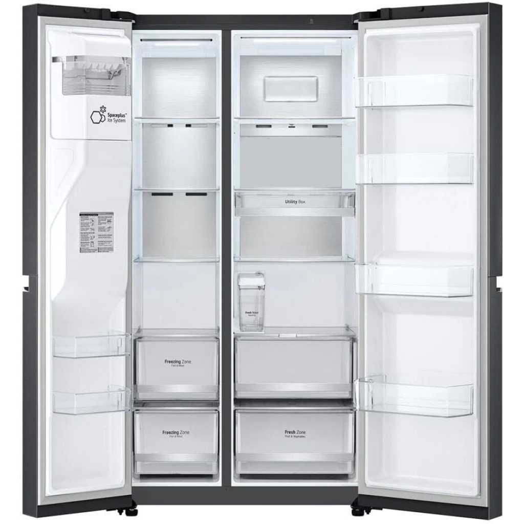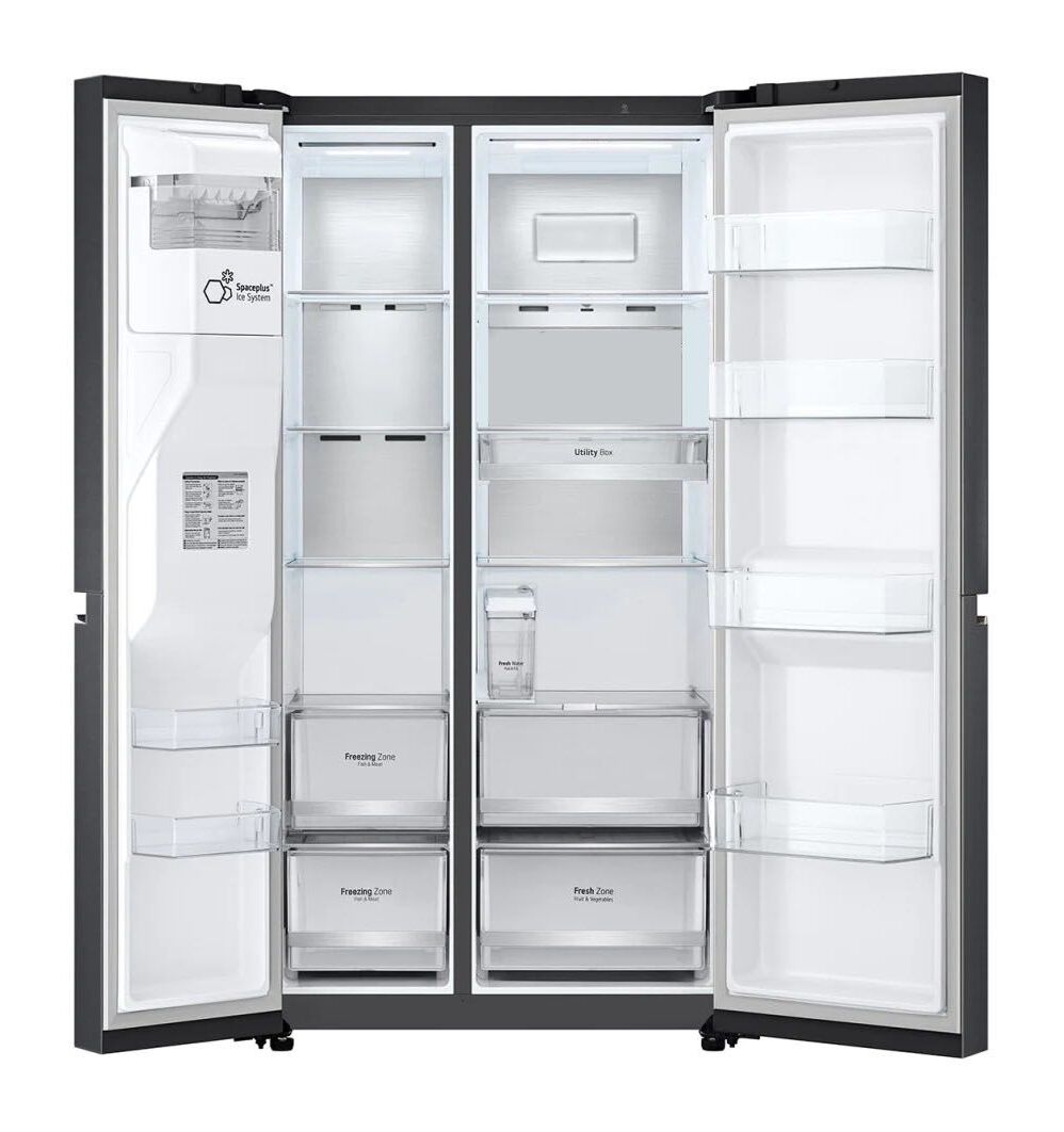 LG 635 L Side by Side Fridge, GC-J257SQRS – Inverter Linear Compressor, DoorCooling™, UVnano™ Dispenser. 635L no frost refrigerator 2 year warranty Inverter linear compressor (10 years warranty) Soft LED lighting Smart diagnosis, Smart ThinQ UVnano ice & water dispenser New shelf/drawer design Flat door Multi air flow Door cooling+ Linear cooling Matte black