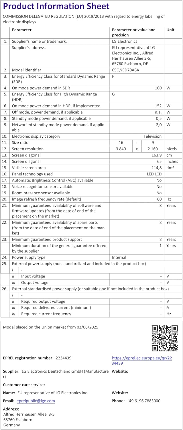 Key Features: All new Dynamic QNED Color with LG’s new, wide color gamut technology displays vivid, lifelike color on your screen α7 AI Processor Gen8 with AI Super Upscaling 4K and Personalized Picture & Sound Wizard webOS with AI Magic Remote enables AI Serch, AI Chatbot, AI Concierge, while the webOS Re:New Program upgrades every year for 5 years True Cinema Experience suported with 4K HDR10,HLG,Filmmaker Mode, Advanced Dynamic Tone Mapping Unlimited Gameplay with HGiG , ALLM , HDMI 2.0 eARC , Game Optimize