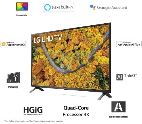 Key Features: Resolution: 4K Ultra HD (3840×2160) | Refresh Rate: 60 hertz Connectivity: 2 HDMI ports to connect set top box, Blu Ray players, gaming console | 1 USB ports to connect hard drives and other USB devices Sound: 20 Watts Output | 2.0 Ch Speaker | AI Sound Smart TV Features: WebOS Smart TV | AI ThinQ, Built-in Google Assistant & Alexa | Apple Airplay 2 & Homekit | Unlimited OTT App Support: Netflix, Prime Video, Disney+ Hotstar, Apple TV, SonyLIV, Discovery+, Zee5, Voot, Google Play Movies & TV, YuppTV, Youtube, Eros Now Display: 4K Ultra HD LED Display | Slim Design | Quad Core Processor 4K Warranty Information: 3 years comprehensive warranty provided by the manufacture from the date of purchase (Offer Valid till 30th Nov’2021) Easy returns: This product is eligible for replacement within 10 days of delivery in case of any product defects, damage or features not matching the description provided