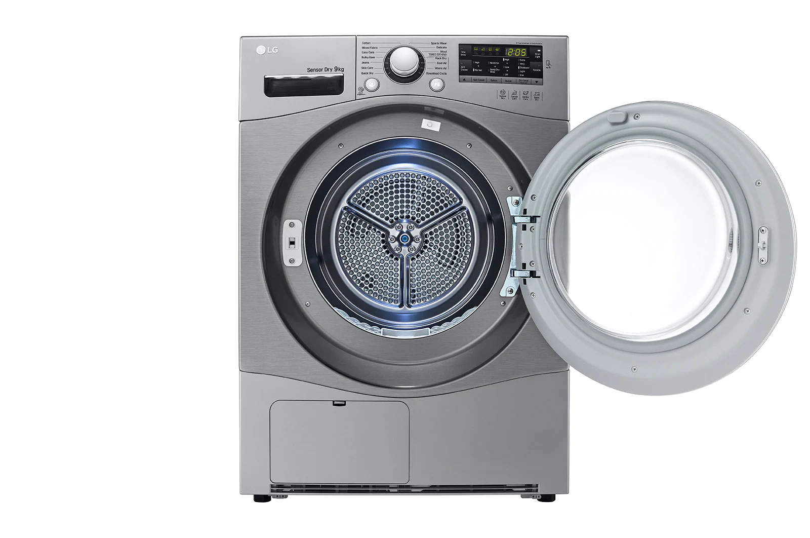 Key Features: LG Front Loader Dryer RC9066 9Kg, Sensor Dry, Inverter Technology, NFC – Dark Silver. Sensor Dry Lint Filter Ventless Drying Stainless Steel Drum Smart Diagnosis