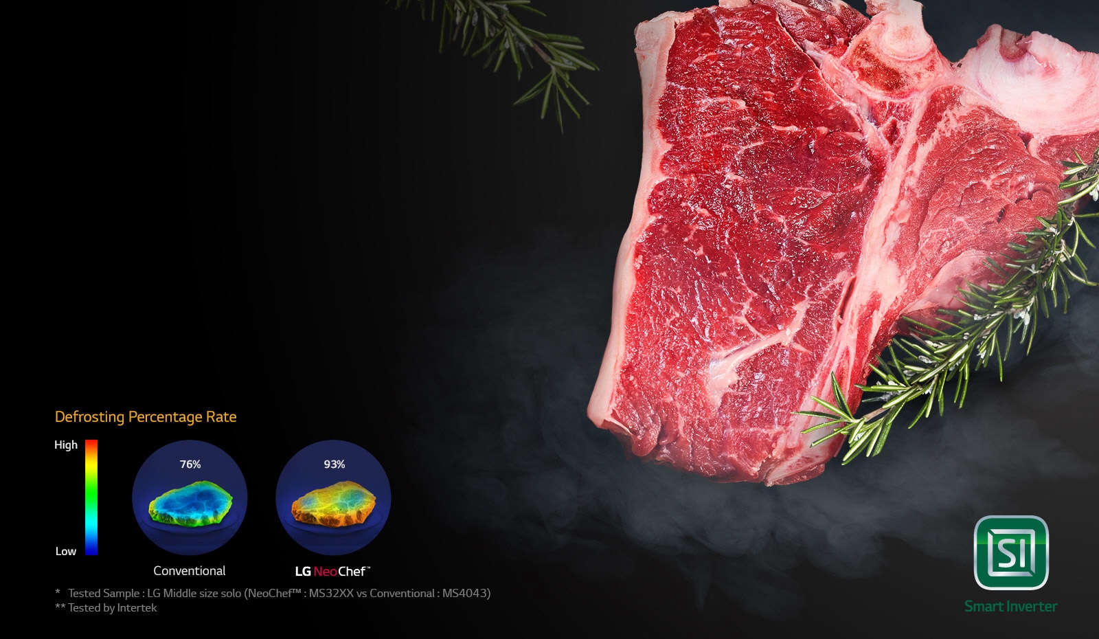 LG MS4295 42L Solo Microwave Oven – Black Smart InverterLG’s Smart Inverter technology provides precise cooking power to reheat and defrost a wide range of foods faster than ever. Thanks to precise temperature control, you can cook a variety of dishes that microwaves were previously never able to prepare. Even HeatingHeat every dish to an even temperature using delicate temperature controls for a more satisfying, tastier dining experience. Even DefrostingBy adjusting the temperature to fit the job, meat can be evenly and thoroughly defrosted more perfectly than you’ve ever experienced.