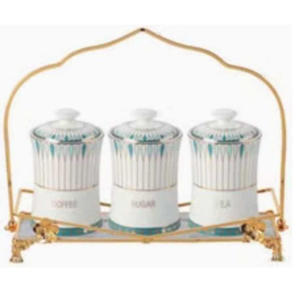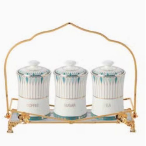 Key Features: Life Smile 3 Piece Ceramic Sugar Bowl Coffee Tea Canister Storage Containers – White Color: White Material: Glass 3 Piece Canister The ceramic tray carries the 3 canisters Easy to clean
