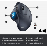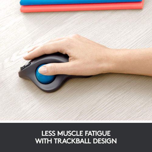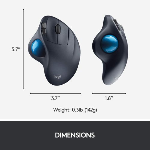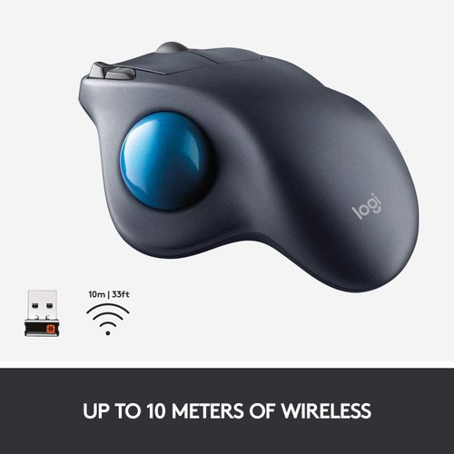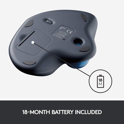 From the manufacturer Wireless Trackball M570 Key Features All-day comfort Work in comfort with a stable, sculpted trackball that supports your hand and lets you rest your arm. Small wonder Logitech Unifying receiver—the tiny, wireless receiver that stays in your laptop and lets you add compatible devices as you need them. Super powered With up to 18 months of use from a single AA, you might just forget your trackball uses batteries at all. Trackball comfort Your trackball stays in one place, so you don’t have to move your arm to move your cursor. Its sculpted shape supports your hand to let you work all day in comfort. Compact footprint Short on space? No problem. Because the trackball doesn’t move, it’s perfect for tight workspaces and busy desks. Logitech Advanced 2.4 GHz wireless You get the reliability of a cord with cordless convenience and freedom—fast data transmission and virtually no delays or dropouts. Logitech Unifying technology Easily connect up to six compatible wireless devices—keyboards, number pads or mice—without the hassle of multiple receivers filling up your USB. ports.