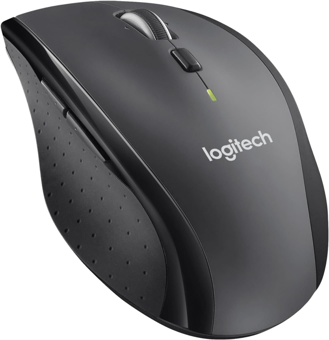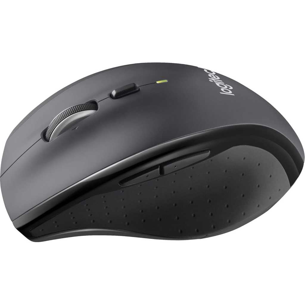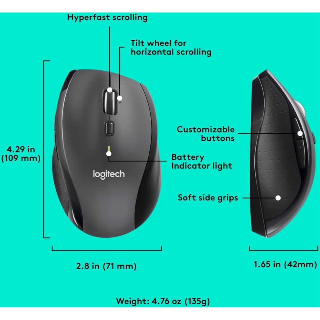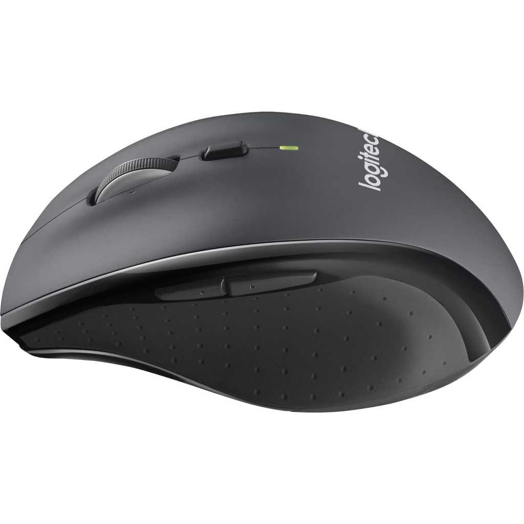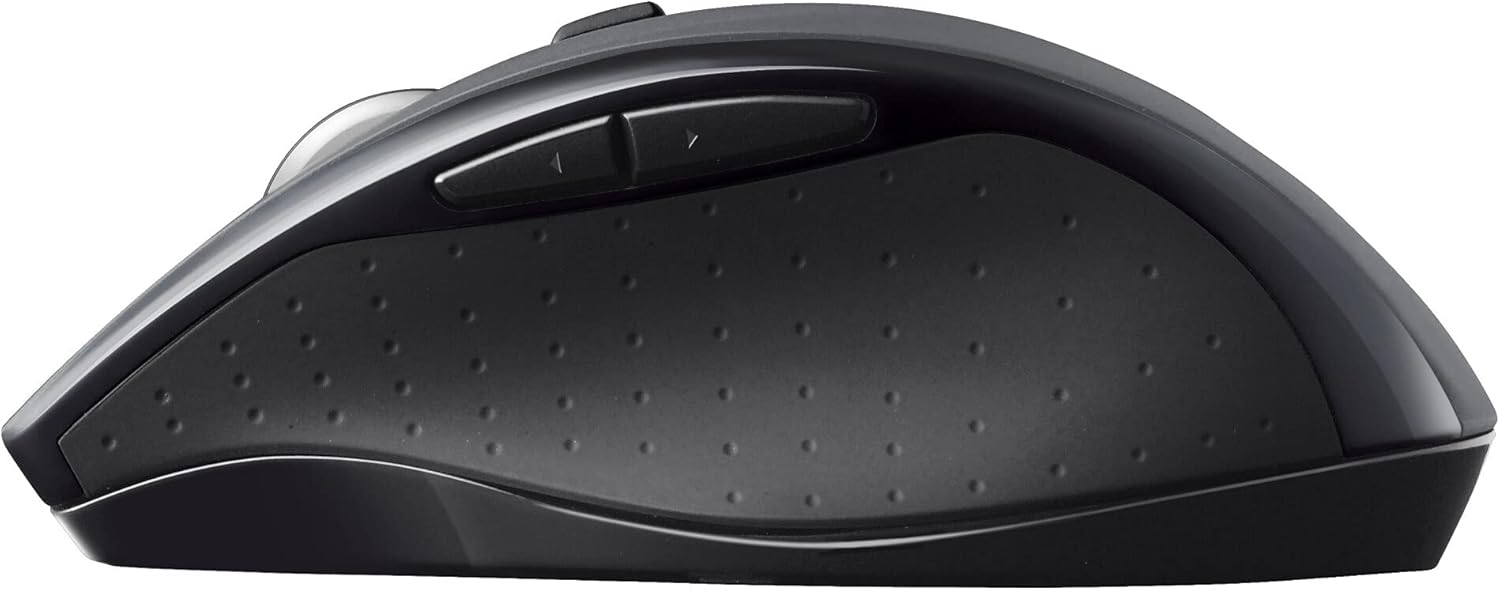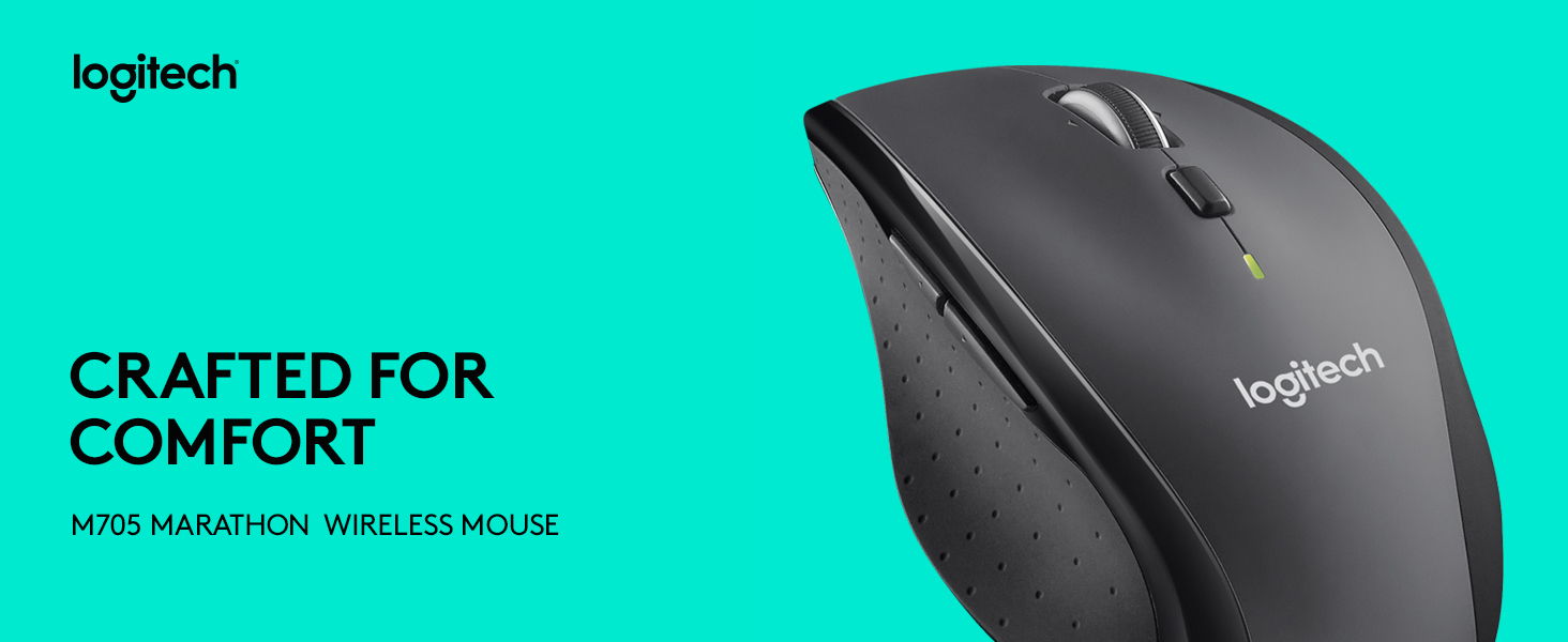 Key Features: Click more. Scroll more. Do more. Logitech Marathon Mouse M705 uses far less power than comparable wireless mice from other companies. That means you can go up to three full years between battery changes* Hyper-fast scrolling lets you fly through long documents and Web pages with a single spin of a nearly frictionless metal scroll wheel The sculpted, right-hand shape guides your hand to a naturally comfortable position and places customizable control within your reach. Two thumb buttons lets you move quickly between Web pages** The tiny Logitech Unifying receiver stays in your laptop. There’s no need to unplug it when you move around, so there’s less worry of it being broken or lost. And you can easily add compatible wireless mice and keyboards to the same wireless receiver Laser grade tracking delivers smooth, responsive, precise cursor control on surfaces that cause problems for standard optical mice, such as polished or wood-grain tables***