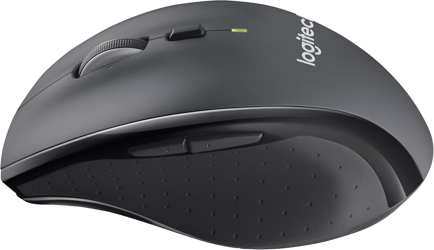 Click more. Scroll more. Do more. Logitech Marathon Mouse M705 uses far less power than comparable wireless mice from other companies. That means you can go up to three full years between battery changes* Hyper-fast scrolling lets you fly through long documents and Web pages with a single spin of a nearly frictionless metal scroll wheel The sculpted, right-hand shape guides your hand to a naturally comfortable position and places customizable control within your reach. Two thumb buttons lets you move quickly between Web pages** The tiny Logitech Unifying receiver stays in your laptop. There’s no need to unplug it when you move around, so there’s less worry of it being broken or lost. And you can easily add compatible wireless mice and keyboards to the same wireless receiver Laser grade tracking delivers smooth, responsive, precise cursor control on surfaces that cause problems for standard optical mice, such as polished or wood-grain tables*** From the manufacturer