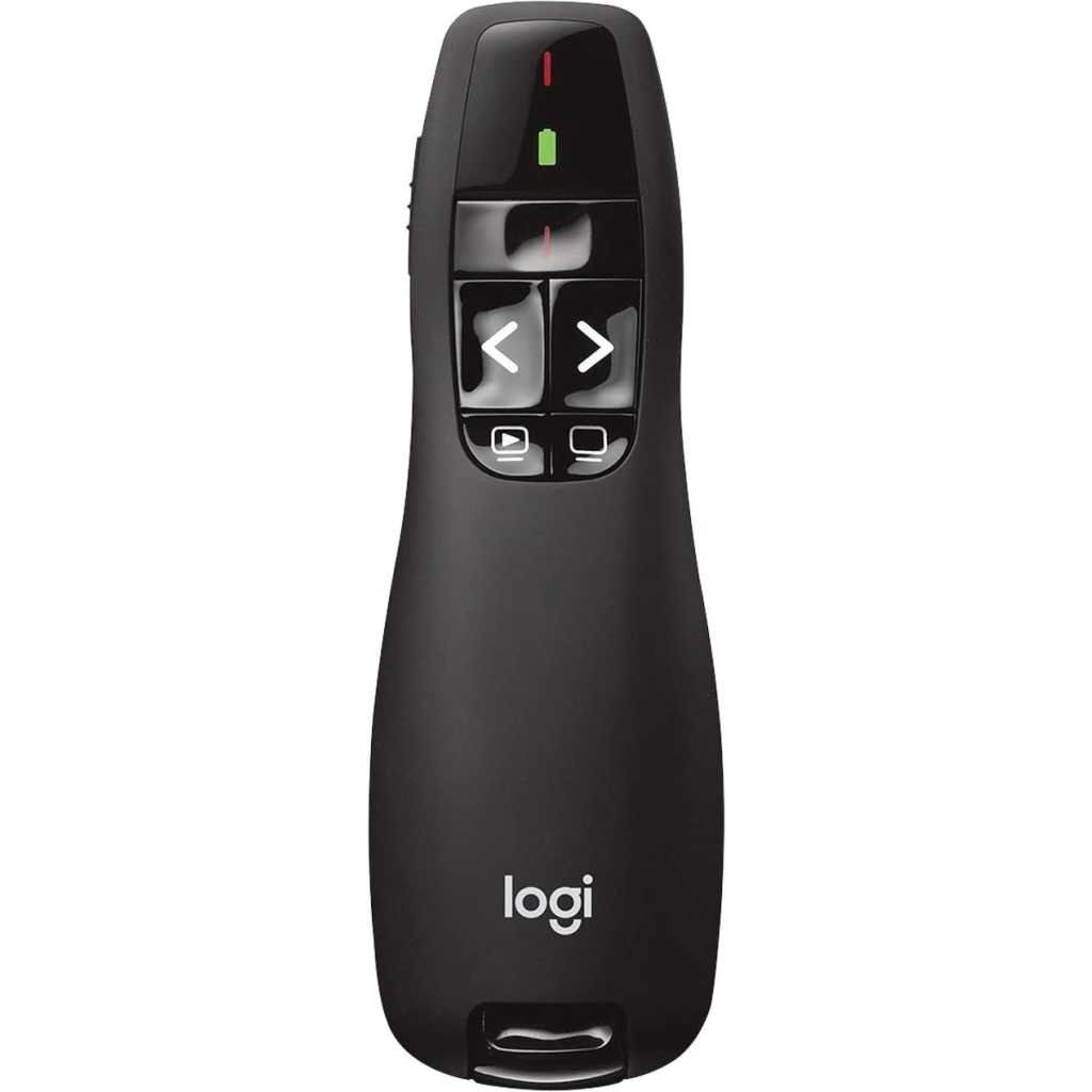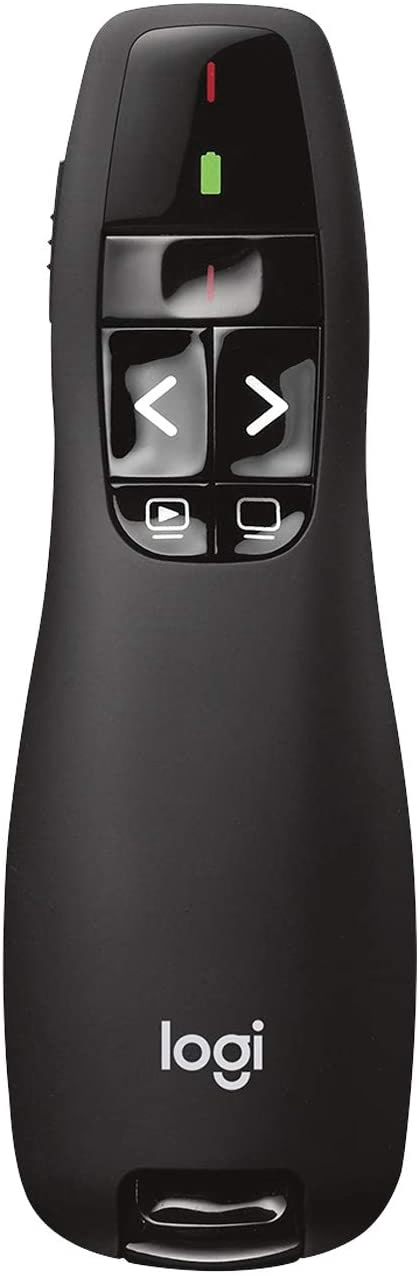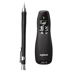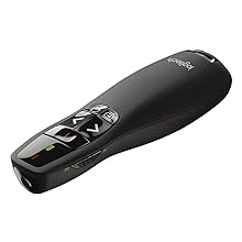 Key Features: Presenter mode,built in class 2 laser pointer, intuitive touch keys for easy slideshow control; AA batteries required (best with Polaroid AA batteries) Bright red laser pointer: Easy to see against most backgrounds Up to 50 foot wireless range for freedom to move around the room 2.4 GHz RF wireless technology, built in docking bay stores receiver for easy pack up and portability There’s no software to install: Just plug the receiver into a USB port to begin: And when the show is over, you can store the receiver in the presenter