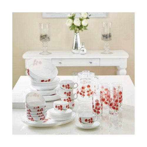 Luminarc Hypnosis Plates, Cups, Bowls Glass Dinnerware Set, 46 Piece, Multicolor Clean, modern design with a pop of color, Luminarc’s Hypnosis Dinner Set consists of 6 x dinner plates, 6 x side plates, 6 x soup bowls, 6 x dessert bowls, 6 x teacups, 6 x saucers, glasses as well as a serving platter, a serving bowl & a jug with lid. Rice Bowl x 1 (Diameter : 27cm x Height : 8.5cm x Weight : 700g) Jug x 1 (Diameter : 10cm x Height : 21cm x Weight : 960g) Dinner Plate x 6 (Diameter : 24.5cm x Height : 1.5cm x Weight : 430g) Dessert Plate x 6 (Diameter : 19.5cm x Height : 1.5cm x Weight : 280g) Soup Plate x 6 (Diameter : 21cm x Height : 3cm x Weight : 350g) Cereal Bowl x 6 (Diameter : 11.5cm x Height : 5cm x Weight : 170g) Tumbler x 6 (Diameter : 6cm x Height : 13.5cm x Weight : 200g) Cup x 6 (Diameter : 8cm x Height : 6cm x Weight : 170g) Saucer x 6 (Diameter : 14cm x Height : 2cm x Weight : 140g) Oval Plate x 1 (Length : 34.5cm x Width : 25.5cm x Height : 2.5cm x Weight : 800g) Fully tempered 3 x more resistanceFood safe100% hygienicMicrowave safe dishwasher safeHigh thermal shock resistanceZero cadmium lead.