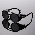 Módní Punk Retro Polarizované Kulaté Sluneční Brýle s Koženými Popruhy UV400 Ochrana Brýle pro Cestování Venku Řízení