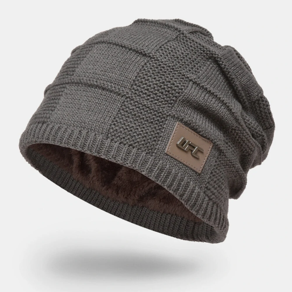 Mænd Plus velour Vinter Udendørs Hold dig varm Lille Etiket Dekoration Strikket Hat Hue