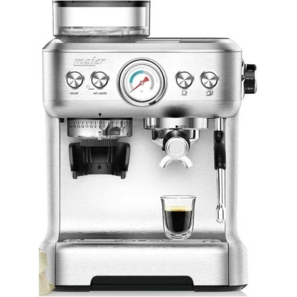 Key Features: Thermoblock heating system Professional ULKA espresso pump (20bar) Short heating time (approx. 1.5 mins.) Integrated hot water function Programmable water volume per cup Pre-brewing function Built-in conical grinder 11 grinding settings Stay-fresh coffee bean storage for 220g beans (for up to 30 espresso shots) With pressure gauge/control function for brewing pressure Hotplate to warm six espresso cups 360° swivelling milk frothing nozzle Removeable water tank: 2 litres Power supply via mains adapter Output: 1,600W Voltage: 220 – 240V