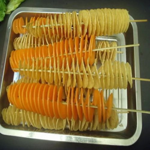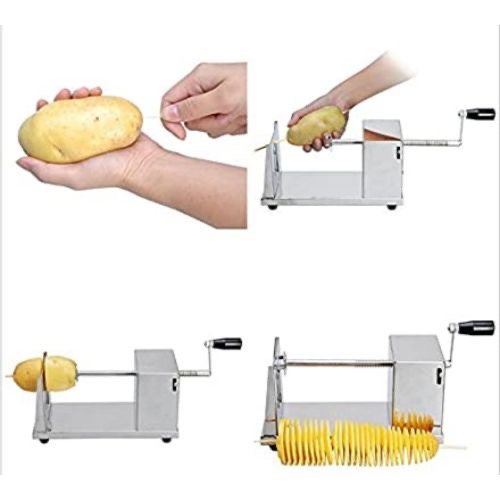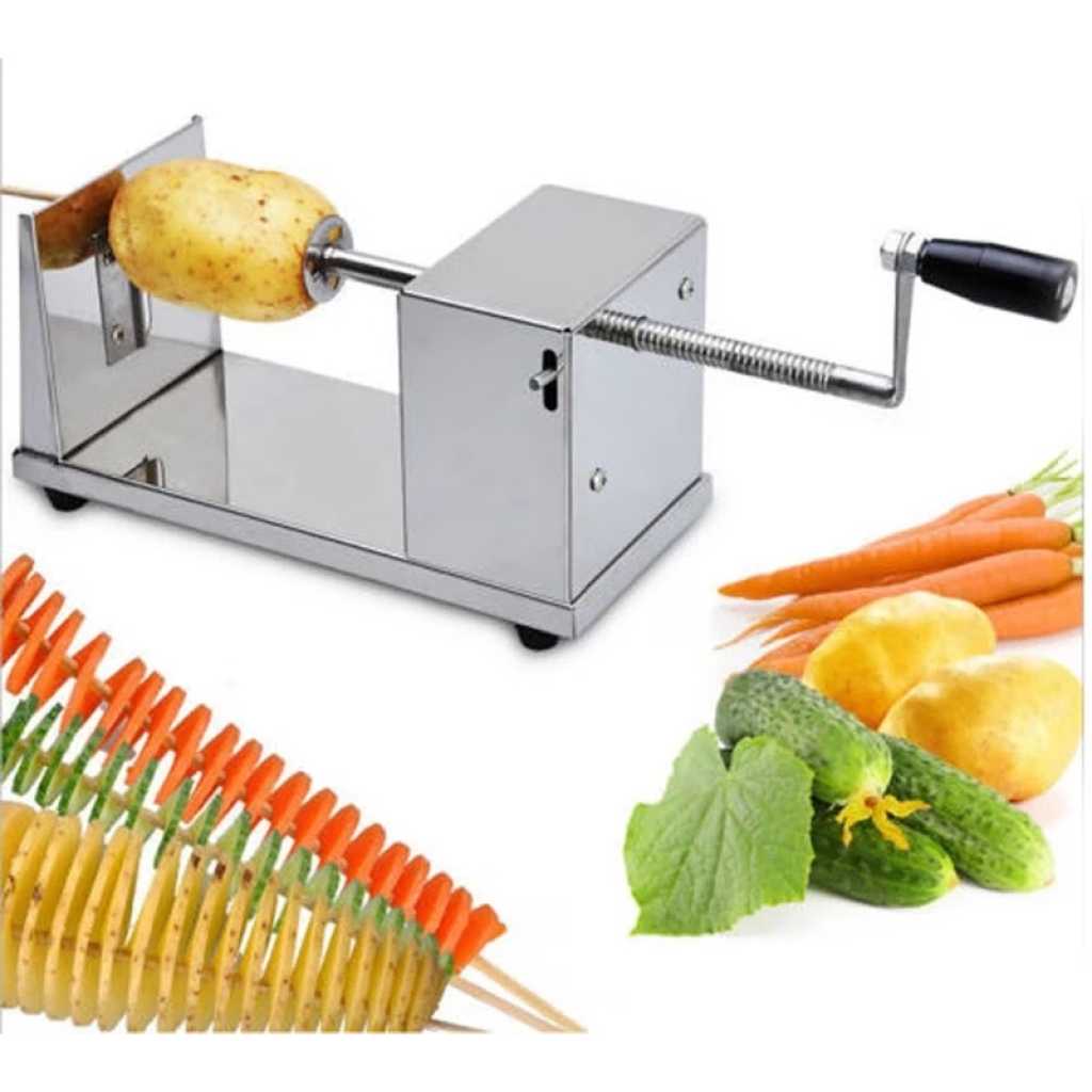 Manual Stainless Steel Potato Chips Slicer Spiral Twister Vegetable Cutter, Silver. Cross links is excited to Potato Tornado cutter, Make your own potato spiral cut skewers at home, Our Potato Tornado cutter features stainless steel construction, easy to use hand crank operation, and quick release lever, Works great with potatoes, zucchini, yams & sweet potatoes, carrots, and even radishes.