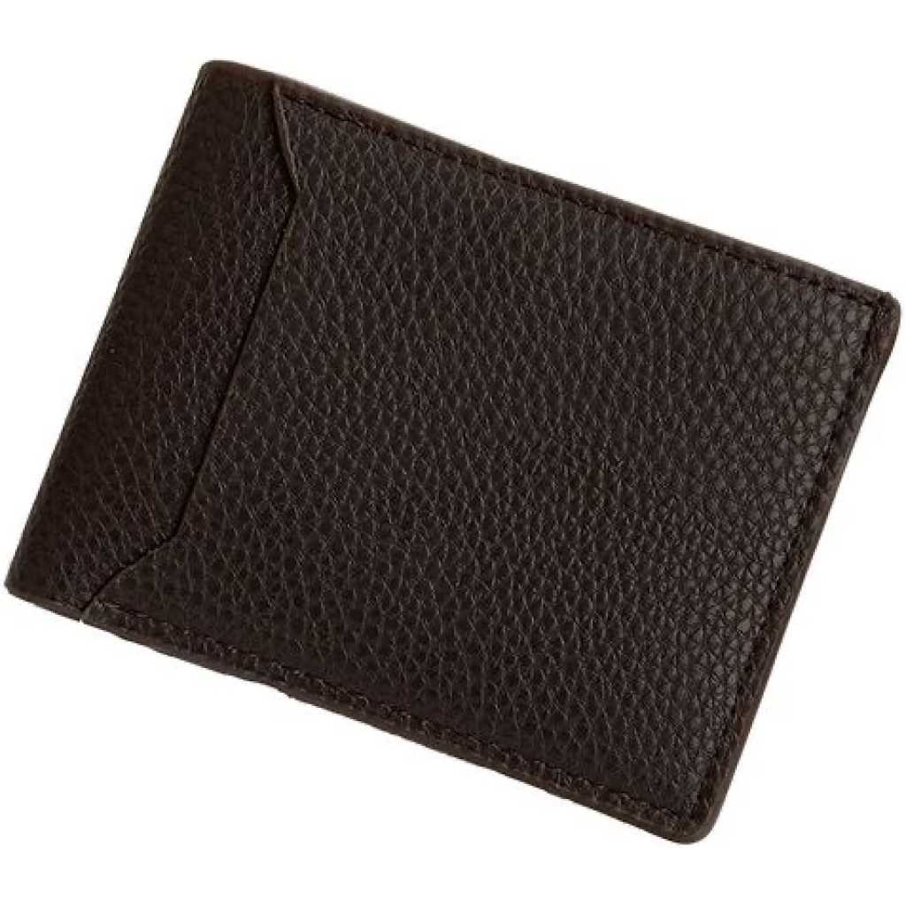Its a mens faux leather simple wallet brown with Interior Slot Pocket and a Compartment Coin Pocket. It has a card holder Compartment and Photo Holder. Its slim and from faux leather material. its suitable for both office and casual use.