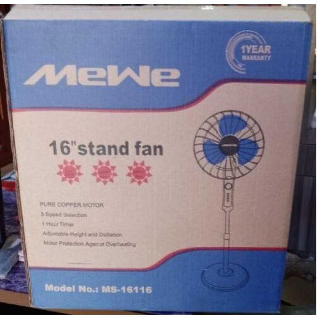 Electrical Tower Fan: This well-engineered pedestal fan by MeWe offers allows you to enjoy a comfortable and cool ambience both at your home or workplace. The sleek and elegant design makes it an ideal addition to your study area, lobby, hallway, bedroom and dining area. Intriguing Design: The MeWe standing fan embraces a 5-transparent blade leaf that offers maximum airflow. It can be adjusted to different heights as desired to ensure equal and maximum flow of air in a living space. Great Functionality: This 5-blade stand fan comes with a 3-speed switch and oscillation function to adjust the fan speed accordingly. You can adjust the speed comfortably with the help of included remote control. It also embraces a Korea guard ring that holds the mesh in place and adds to its durability and reliable performance. Excellent Performance: You can set this 3-speed pedestal fan to a 7.5 hours timer using the auto wind flow function to enjoy a comfortable night time. It also features a self-protection system that protects its functionality when overheated. Product Specification: The MeWe stand fan with remote control measures 16 in. in height and comes in a sleek black colour. It works efficiently and produces a low noise as it operates on an in-built 60W copper motor.